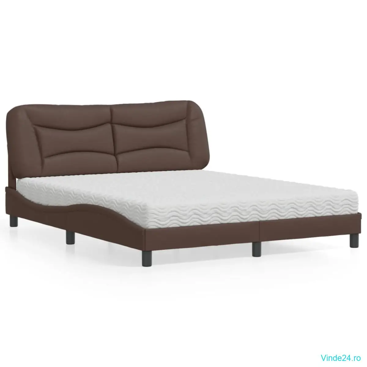 vidaXL Pat cu saltea, maro, 160x200 cm, piele ecologică