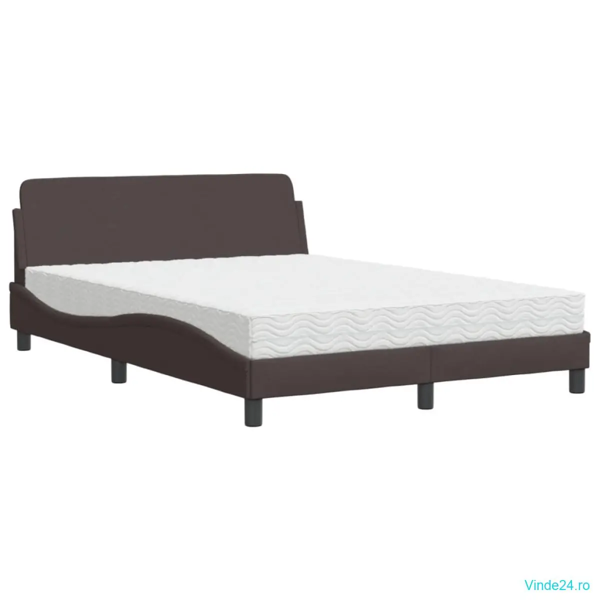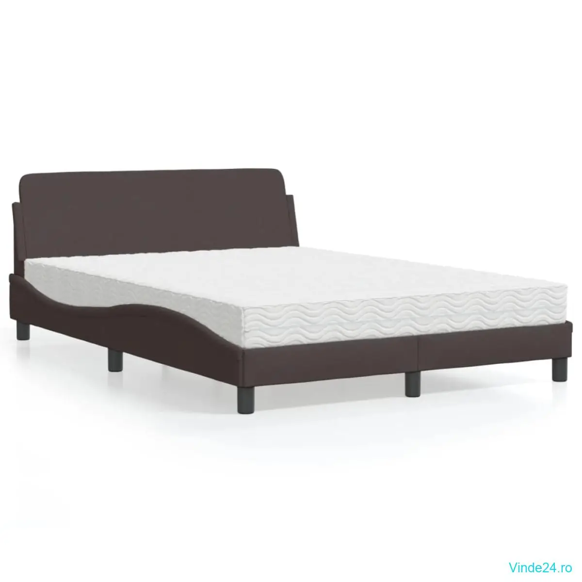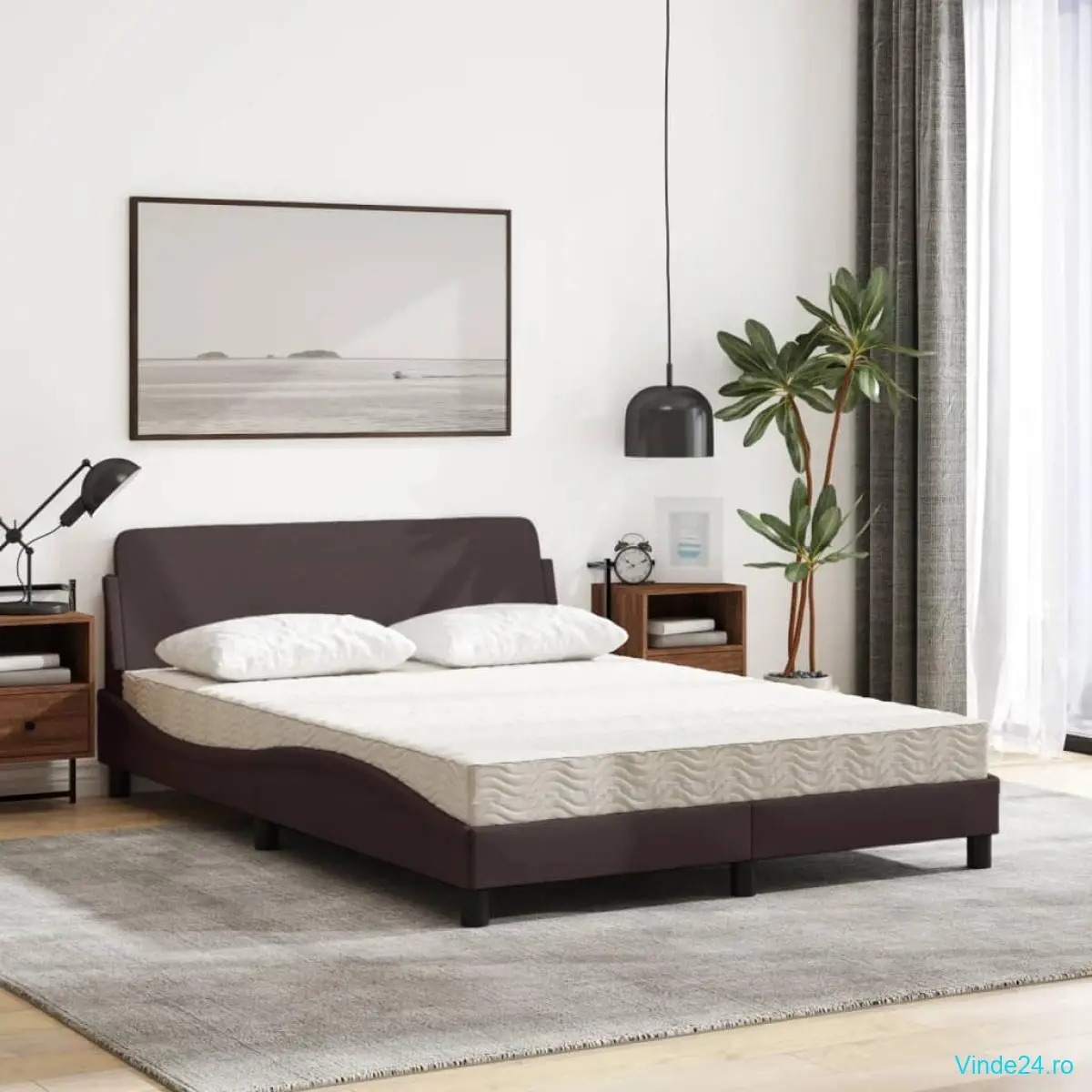 vidaXL Pat cu saltea, maro închis, 120x200 cm, textil