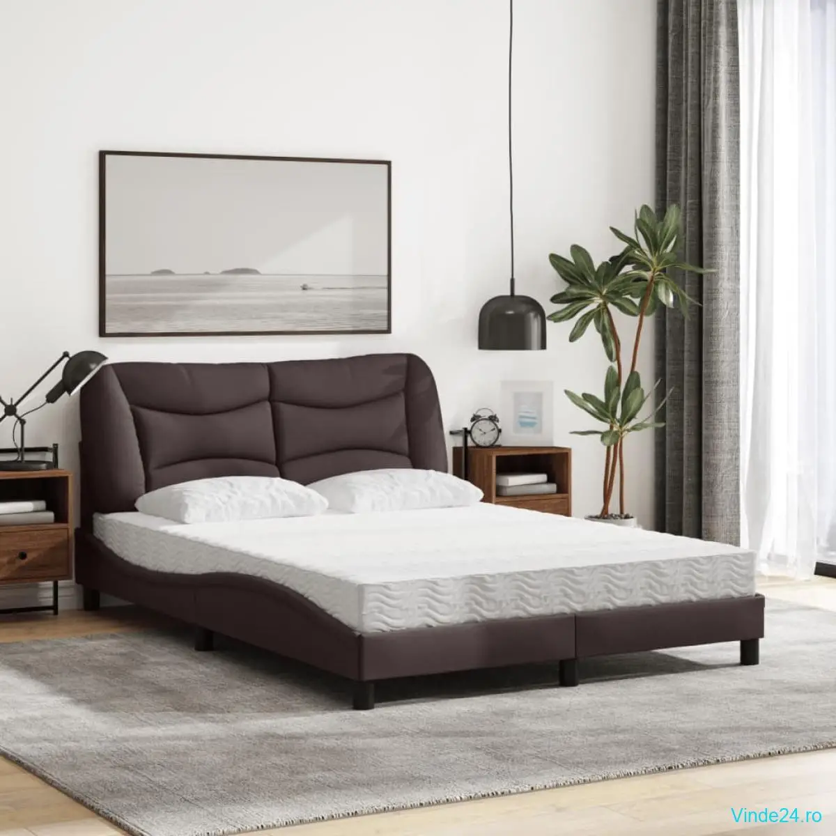 vidaXL Pat cu saltea, maro, 140x190 cm, piele ecologică