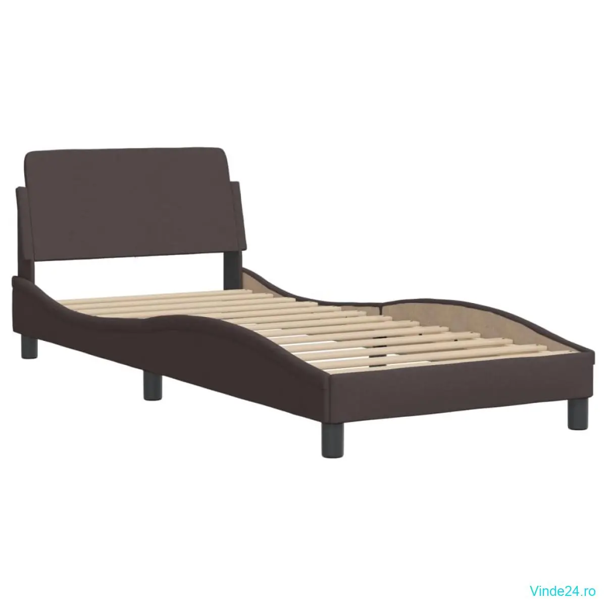 vidaXL Pat cu saltea, maro închis, 90x200 cm, textil
