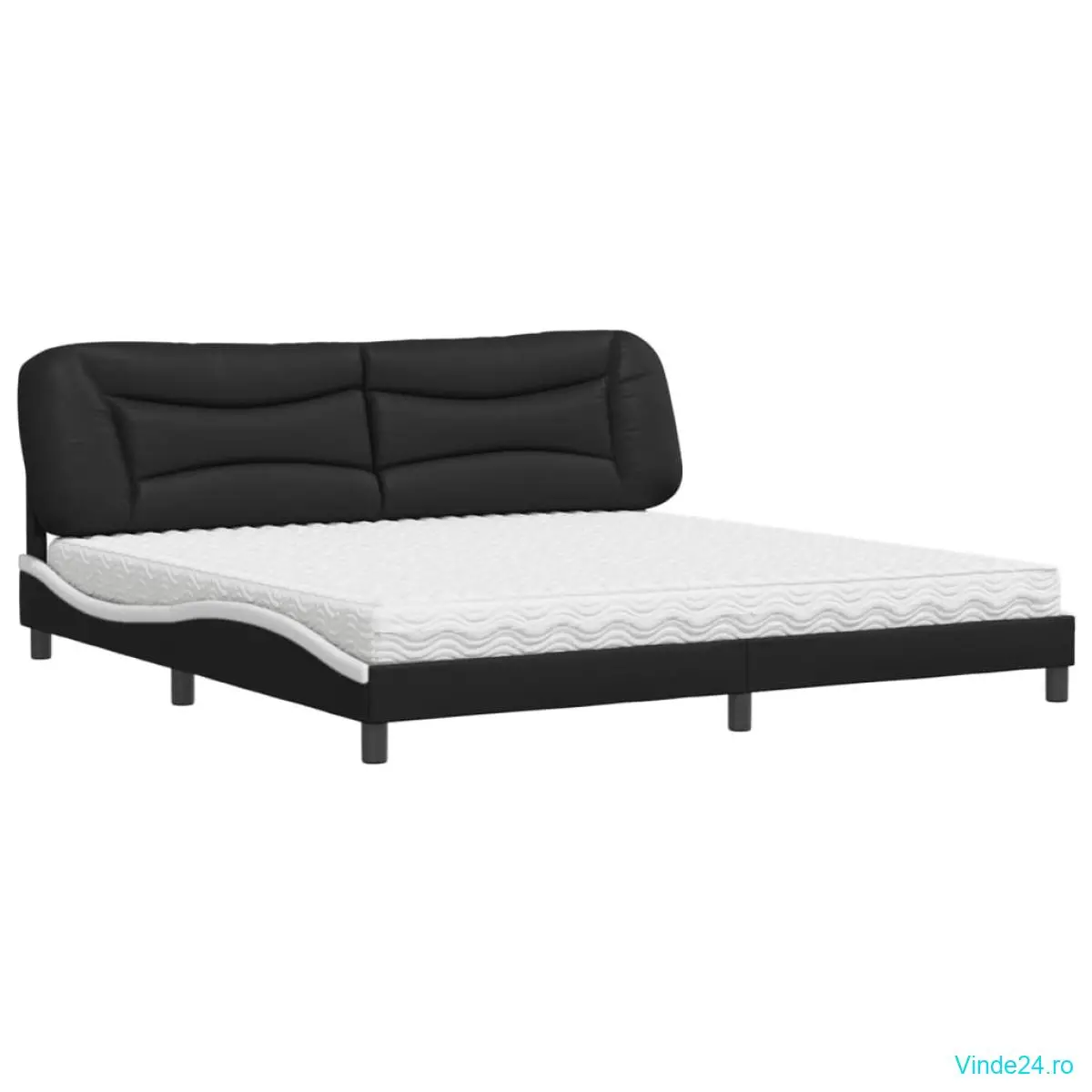 vidaXL Pat cu saltea, negru și alb, 200x200 cm, piele ecologică