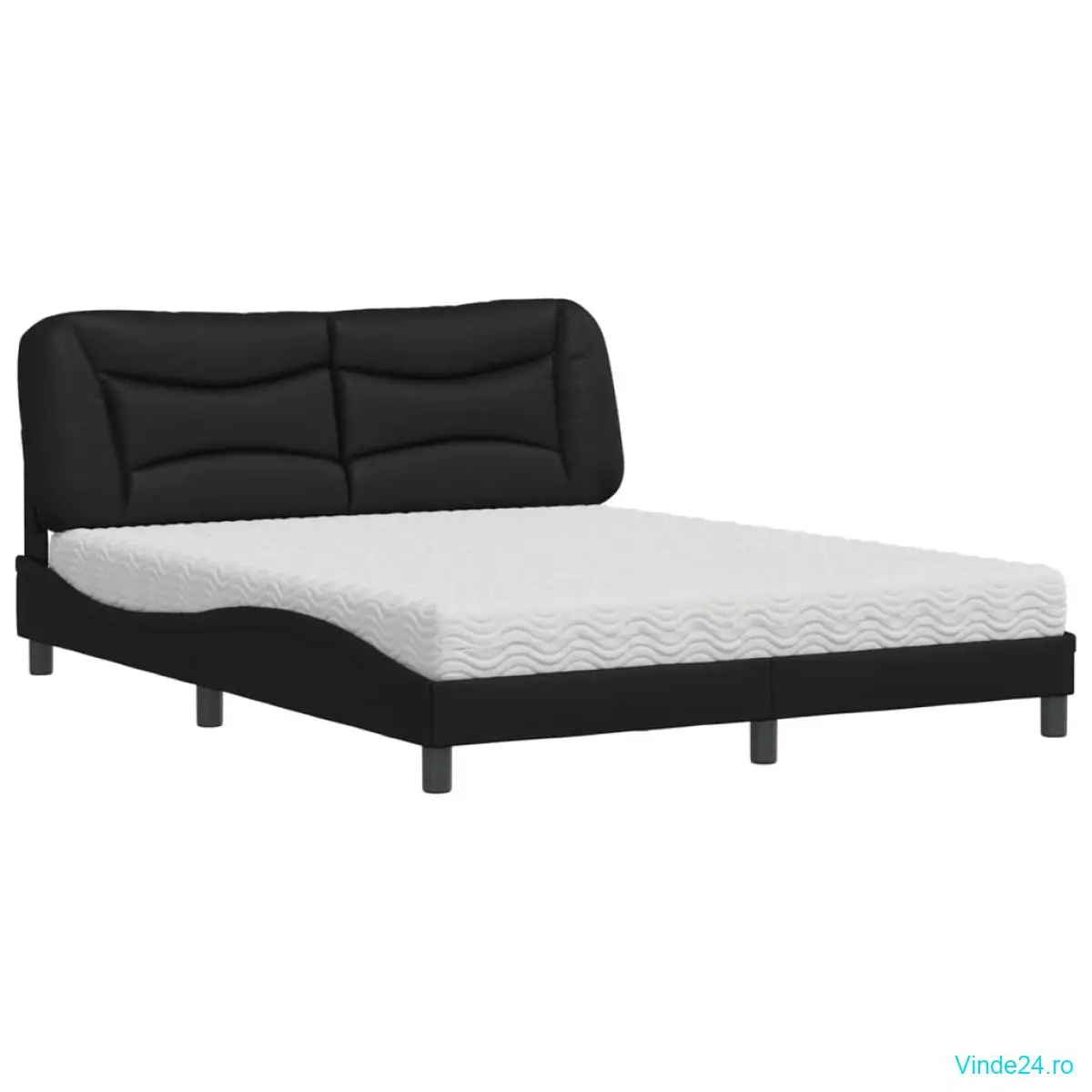 vidaXL Pat cu saltea, negru, 160x200 cm, piele ecologică