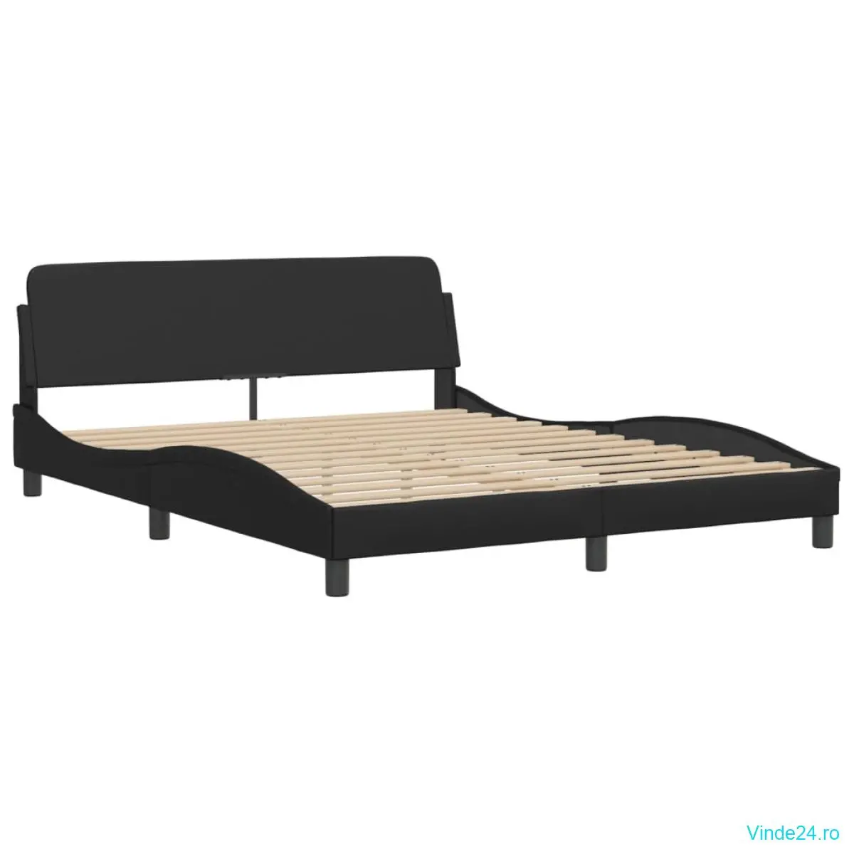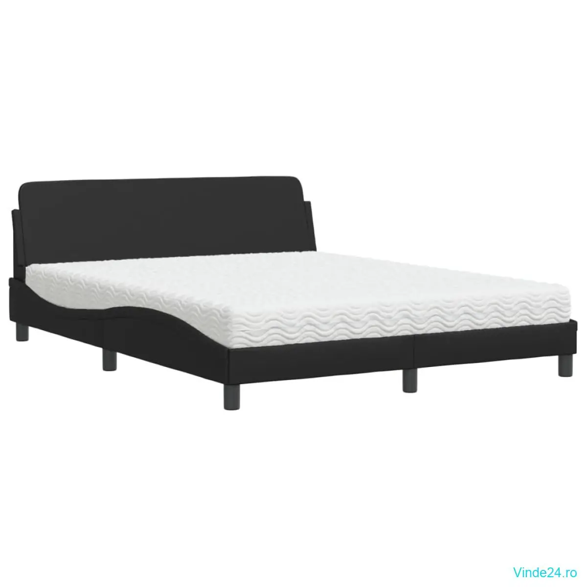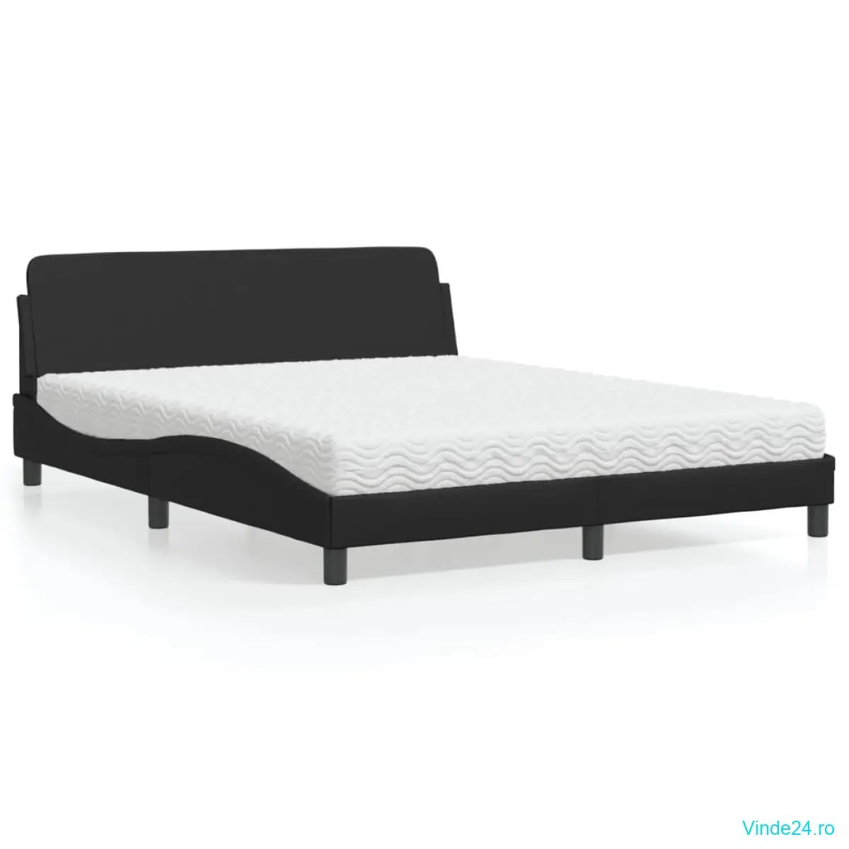 vidaXL Pat cu saltea, negru, 160x200 cm, piele ecologică