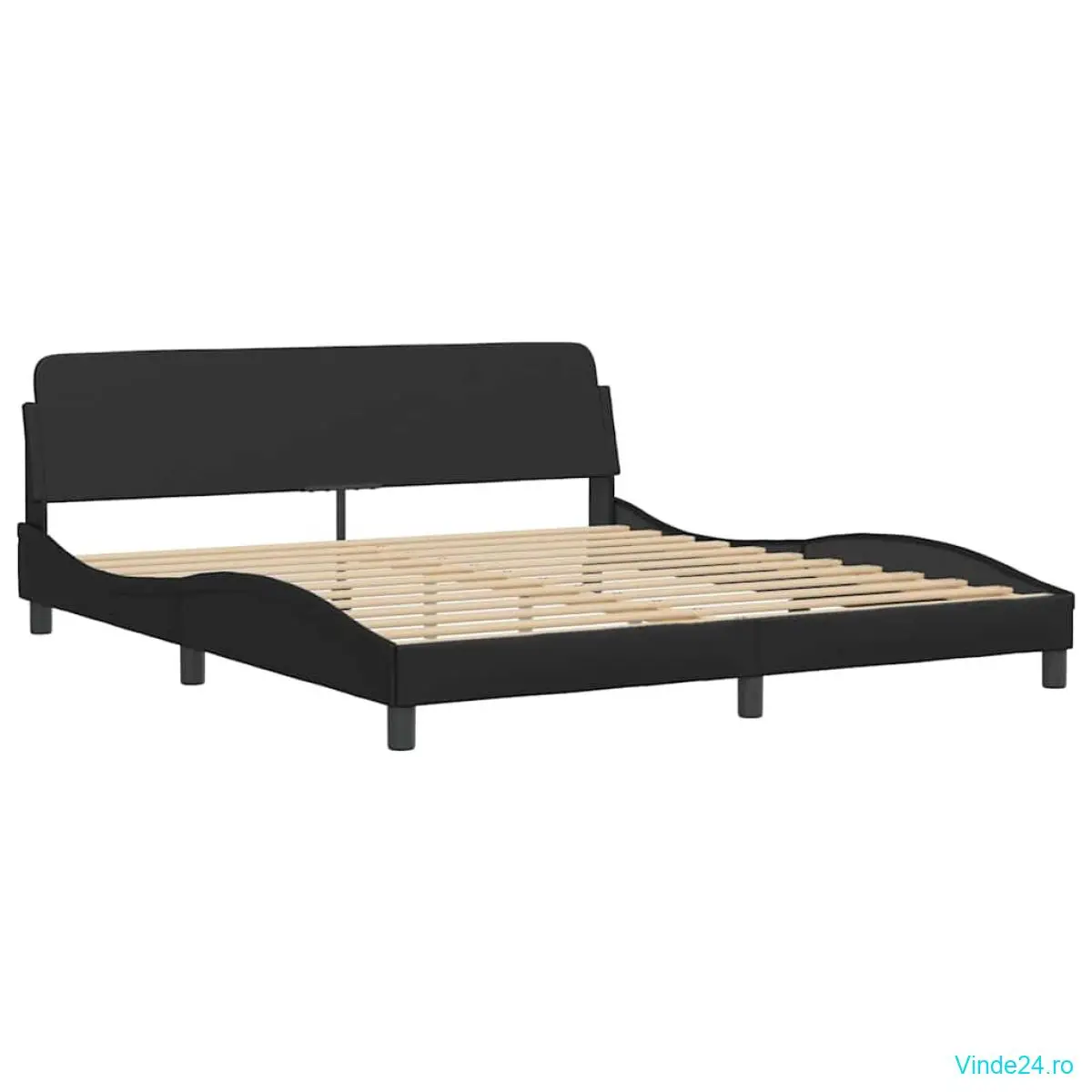 vidaXL Pat cu saltea, negru, 180x200 cm, piele ecologică