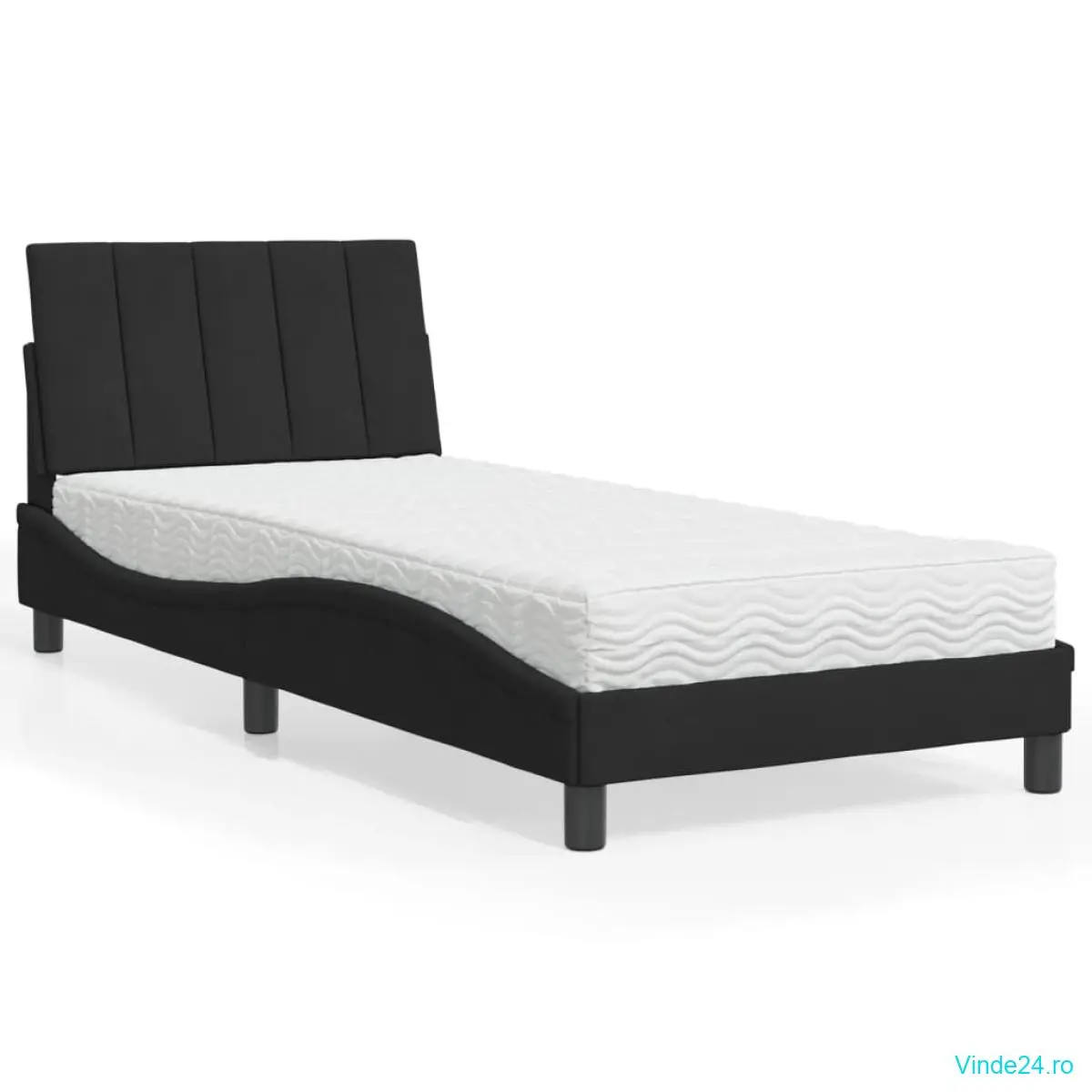 vidaXL Pat cu saltea, negru, 90x190 cm, catifea