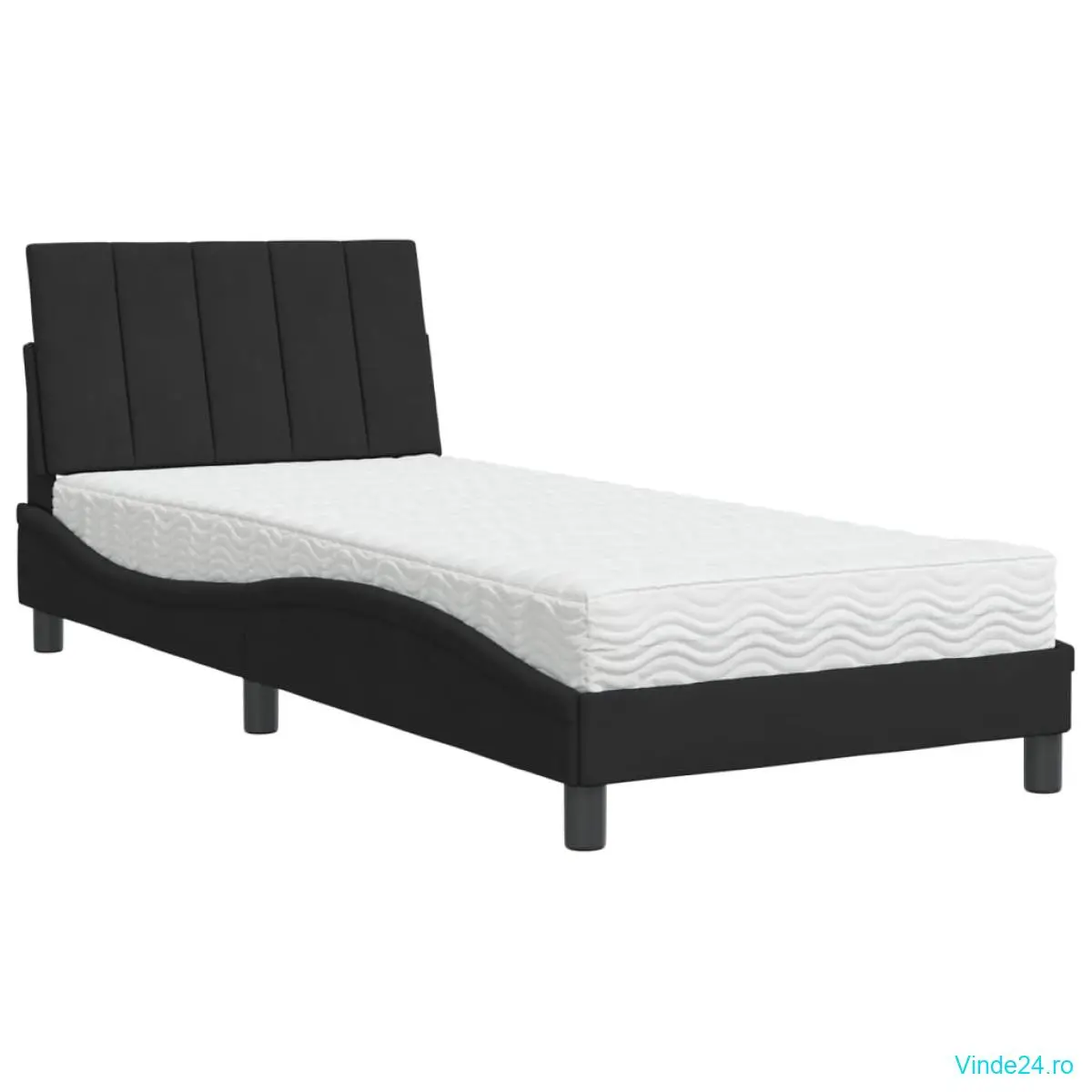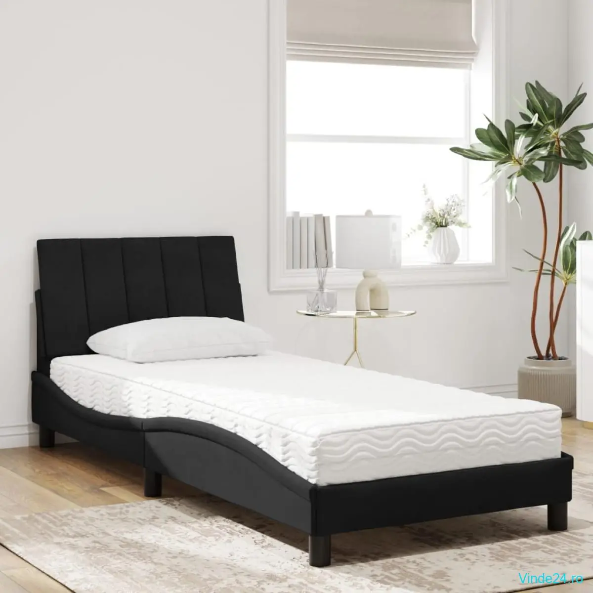 vidaXL Pat cu saltea, negru, 80x200 cm, catifea