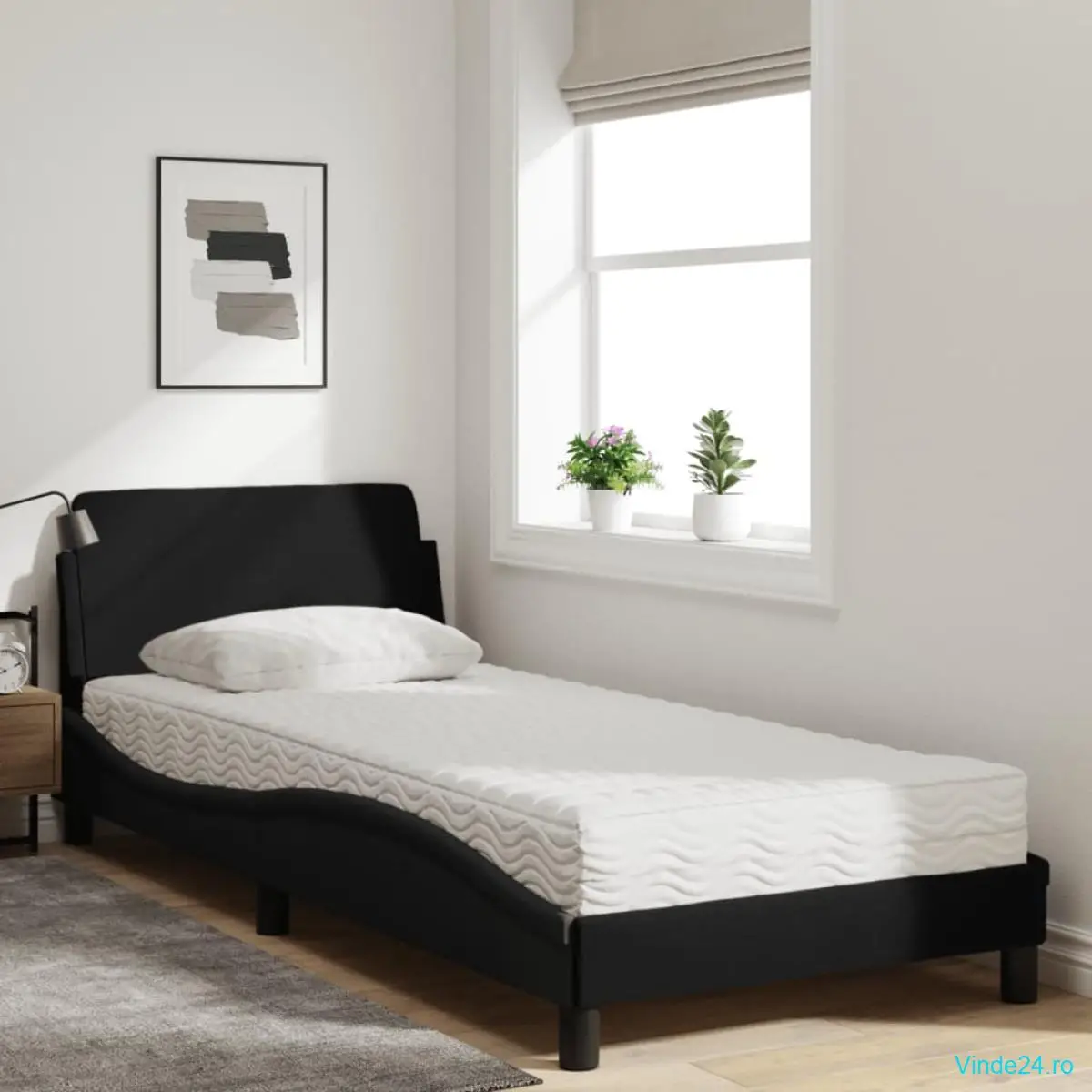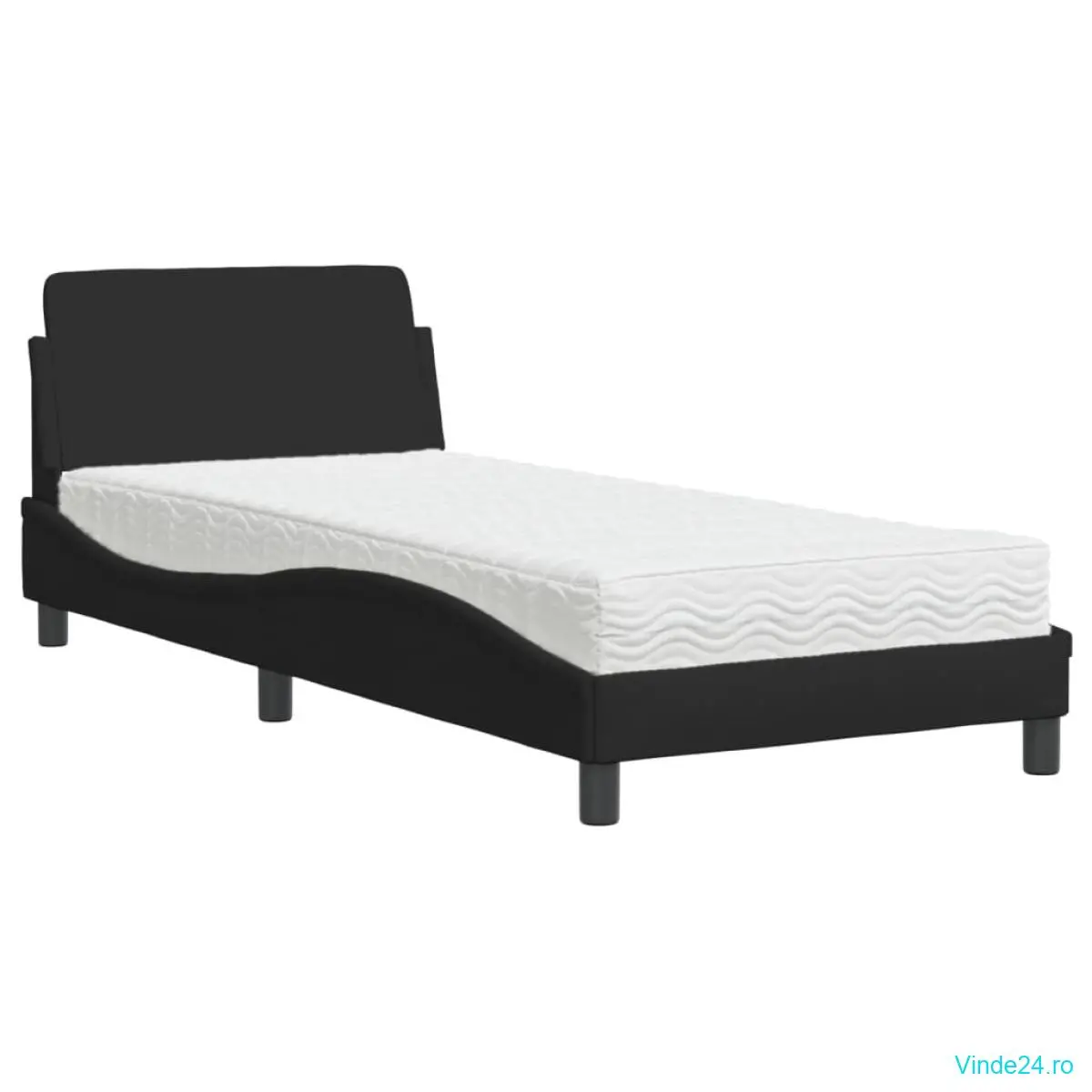 vidaXL Pat cu saltea, negru, 90x190 cm, textil