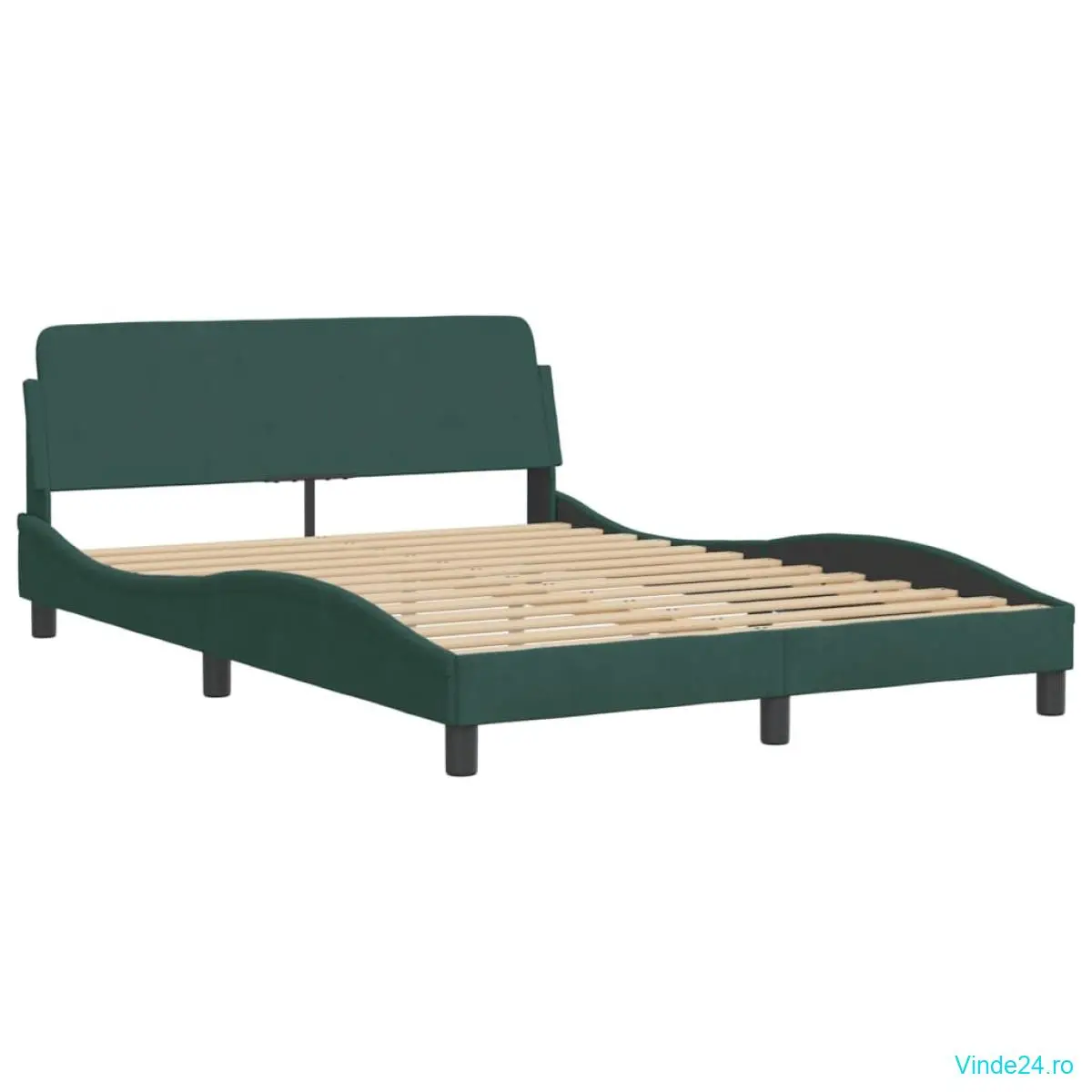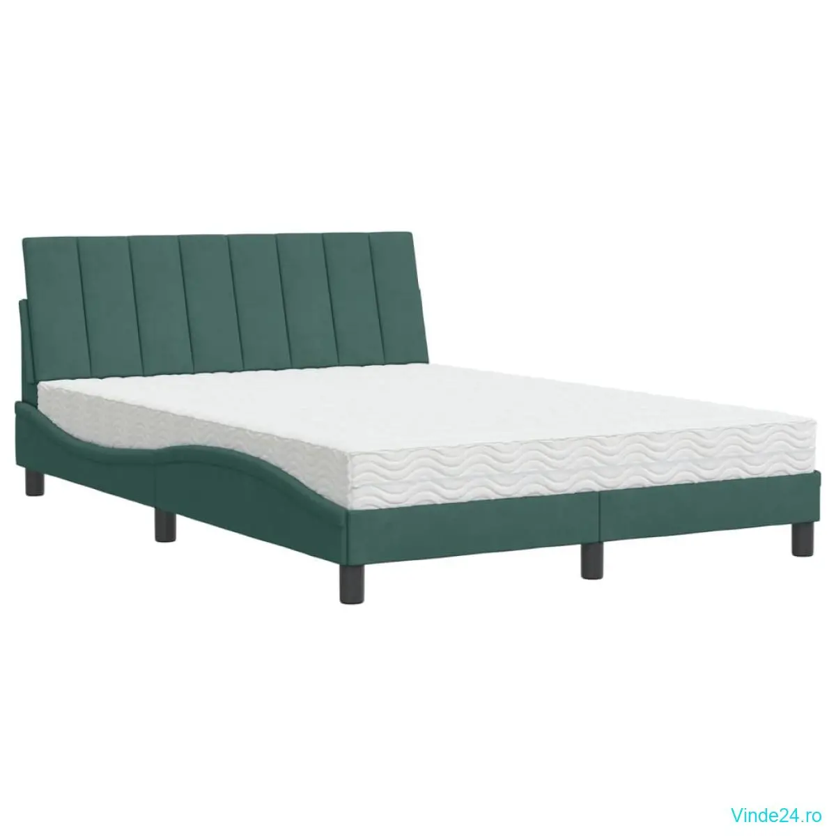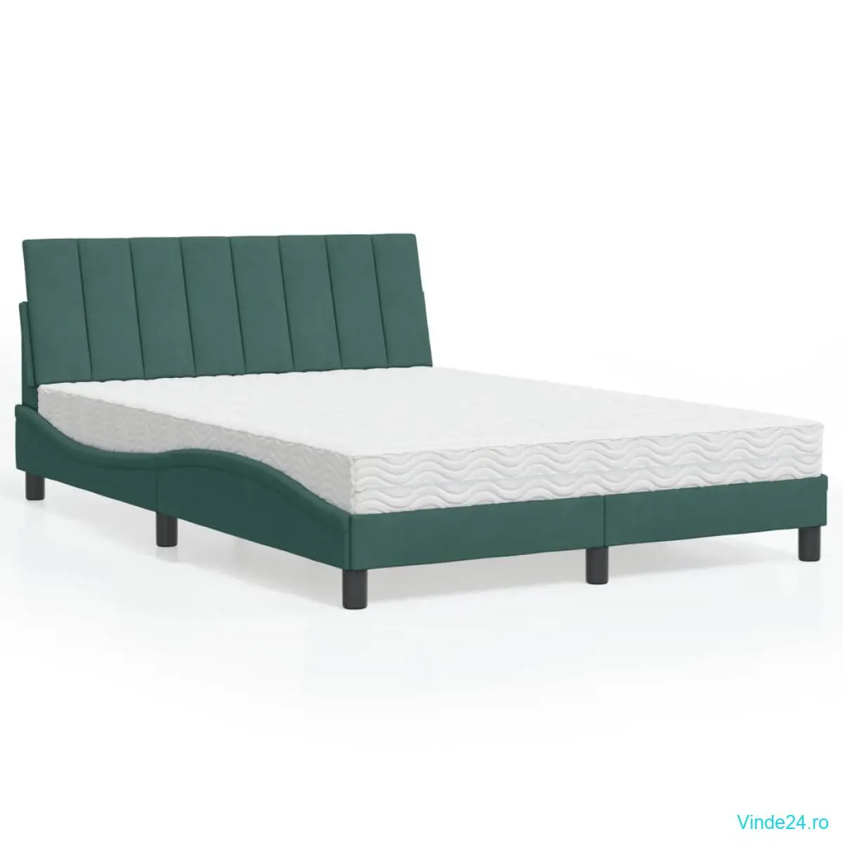 vidaXL Pat cu saltea, verde închis, 140x200 cm, catifea