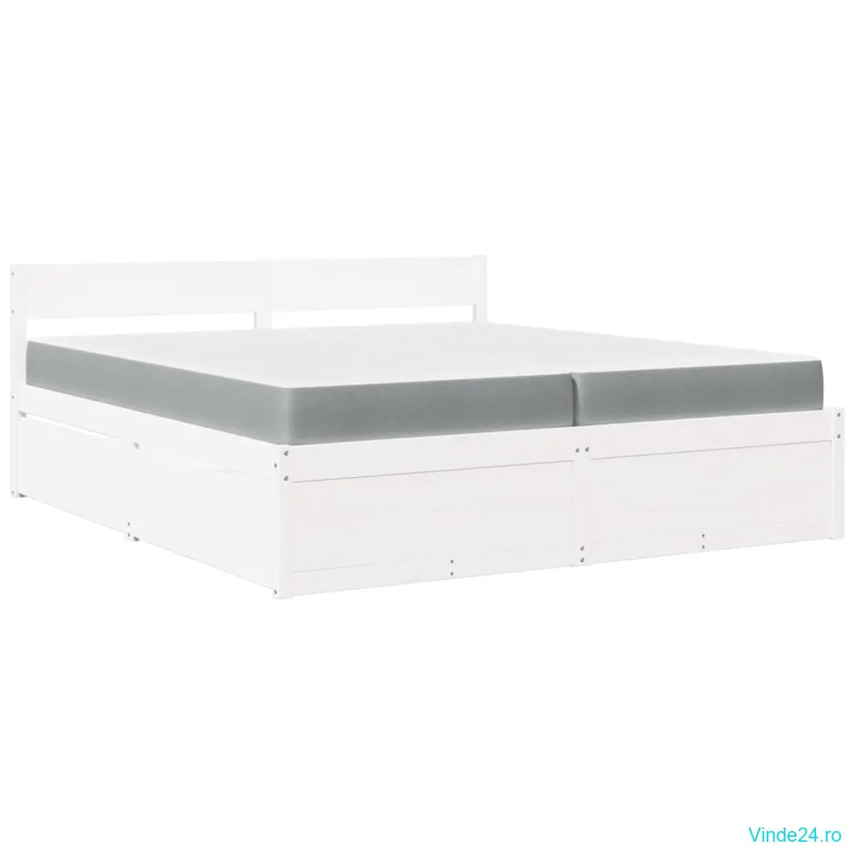 vidaXL Pat cu sertare și saltea, alb, 200x200 cm, lemn masiv pin