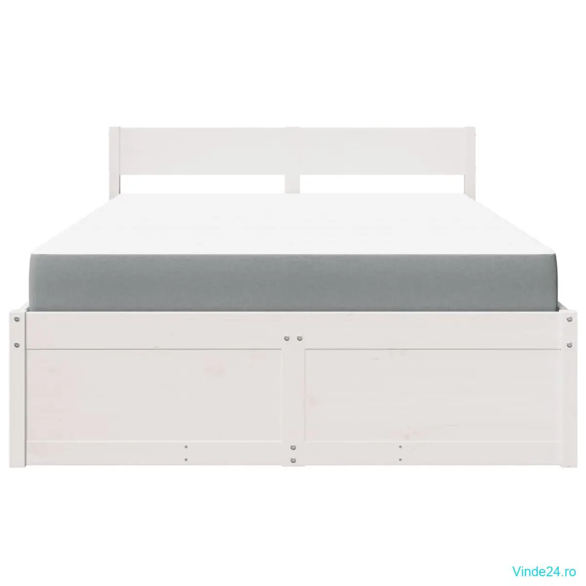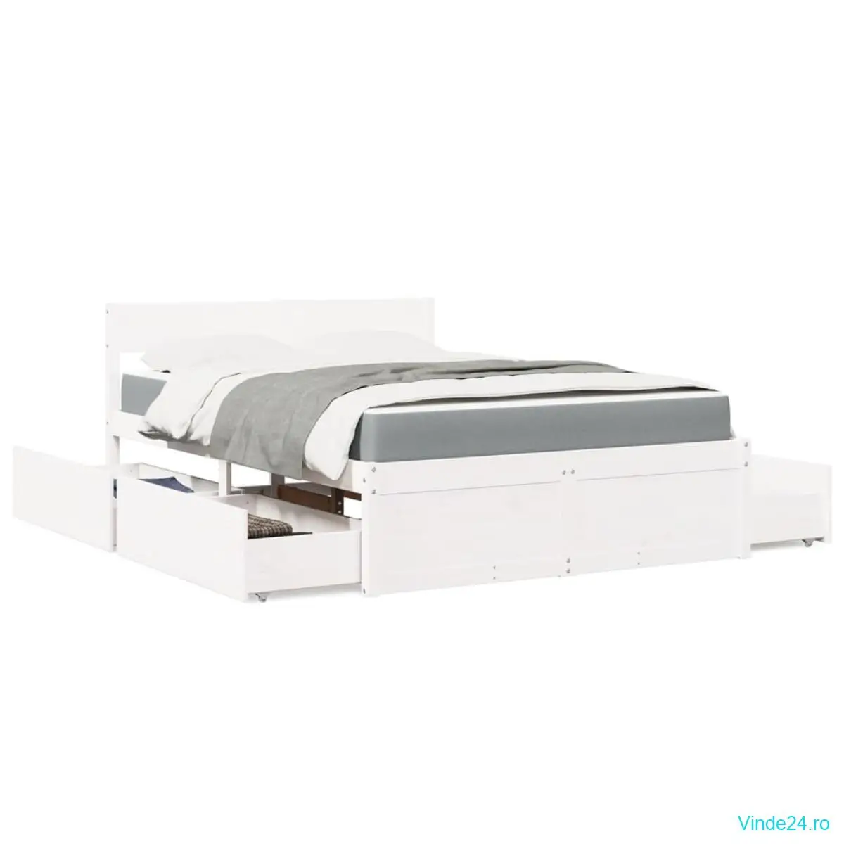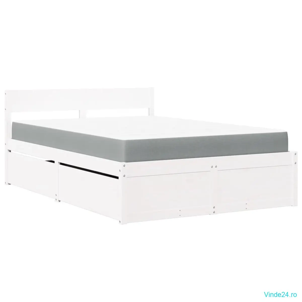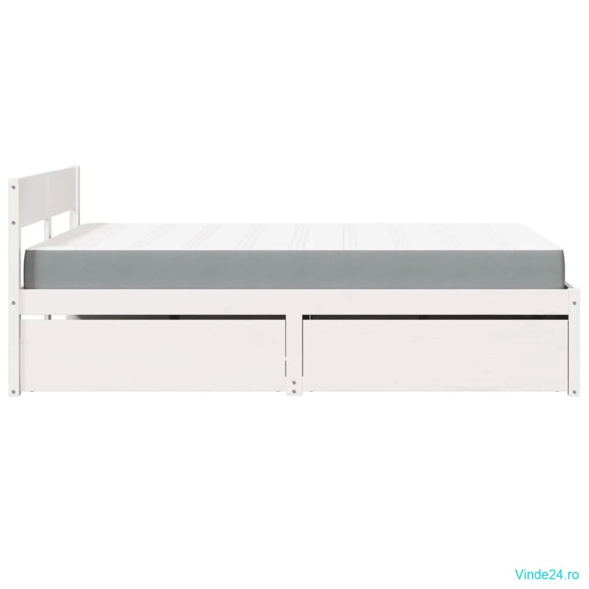 vidaXL Pat cu sertare saltea, alb, 120x200 cm, lemn masiv pin