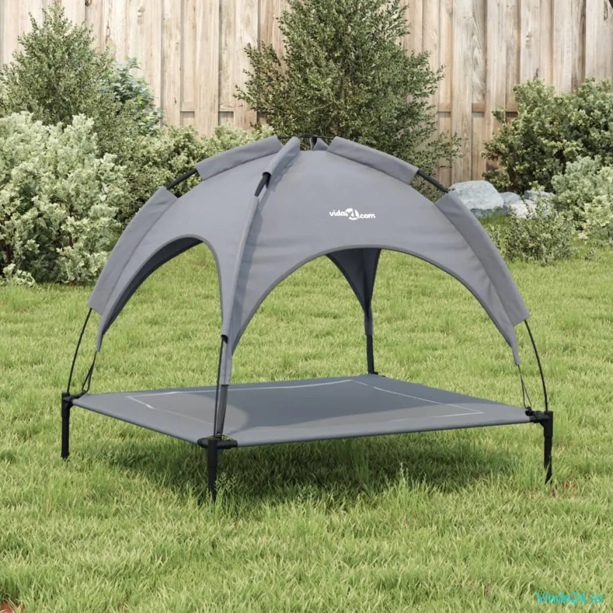 vidaXL Pat de câini cu baldachin, antracit, țesătură Oxford și oțel