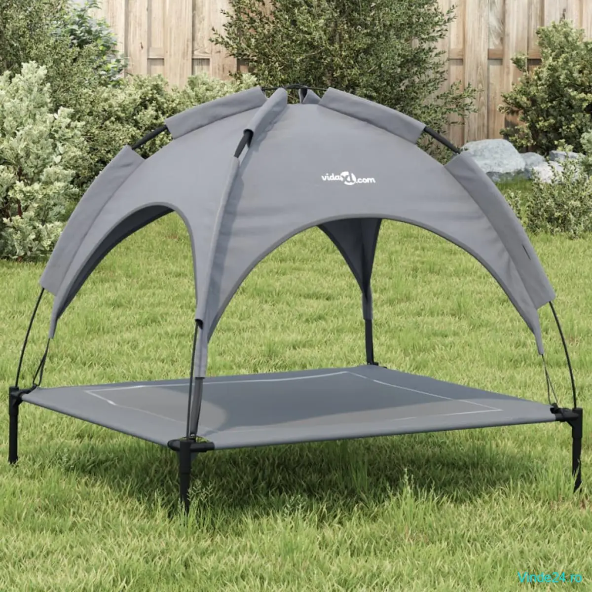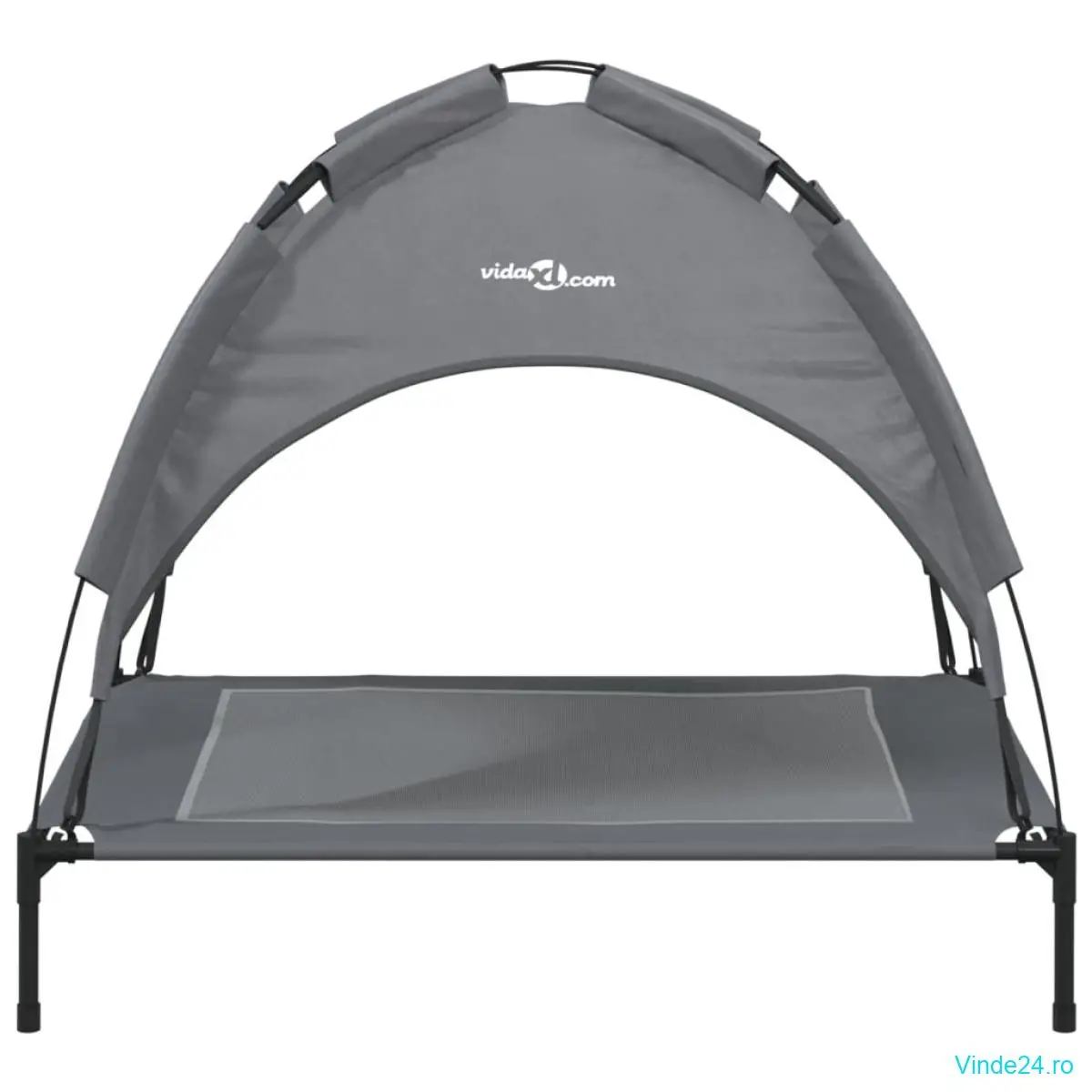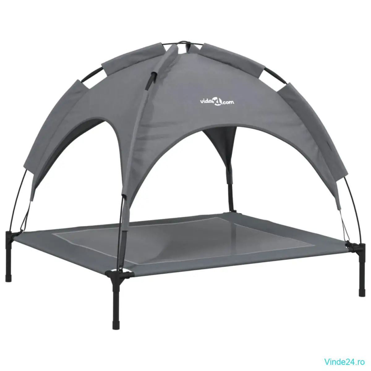 vidaXL Pat de câini cu baldachin, antracit, țesătură Oxford și oțel