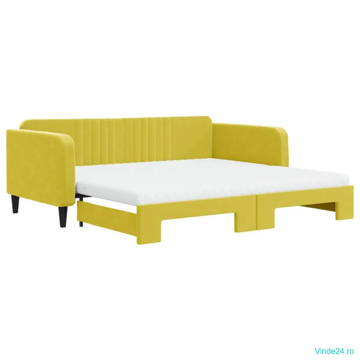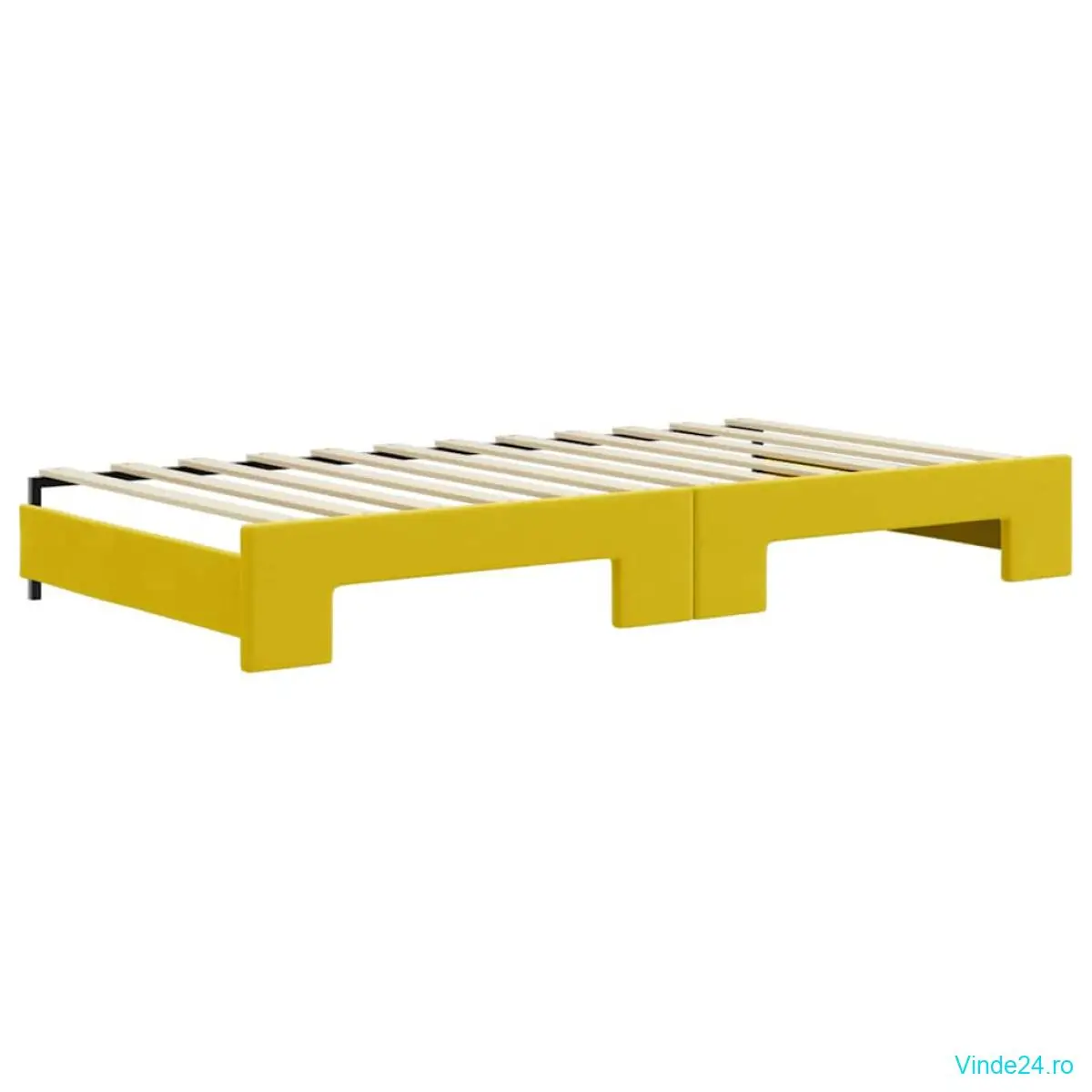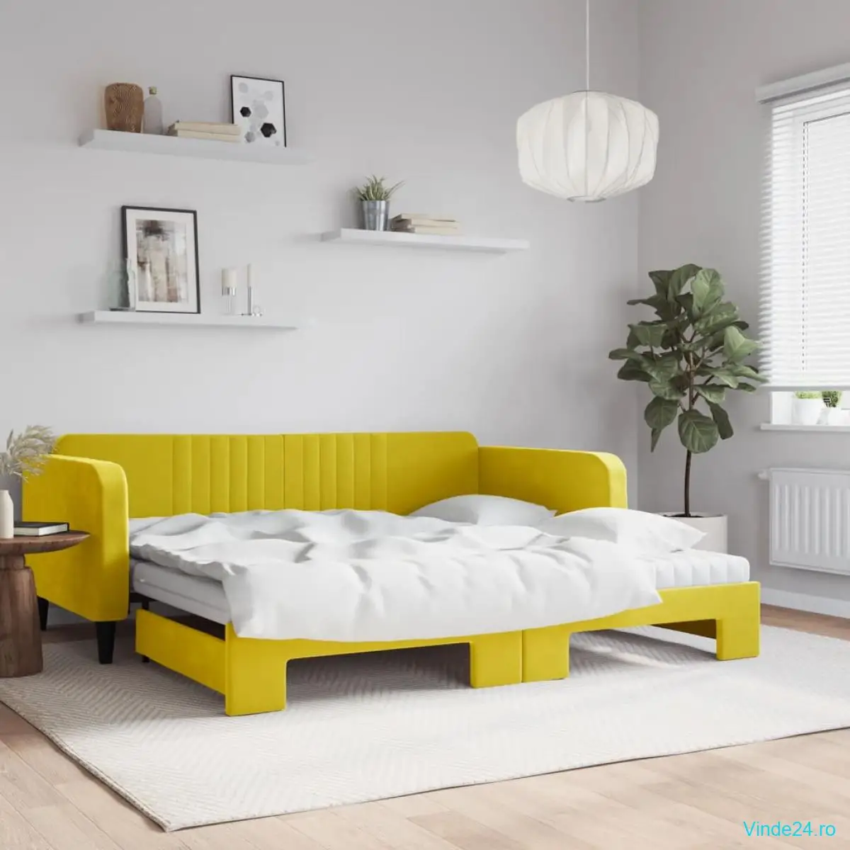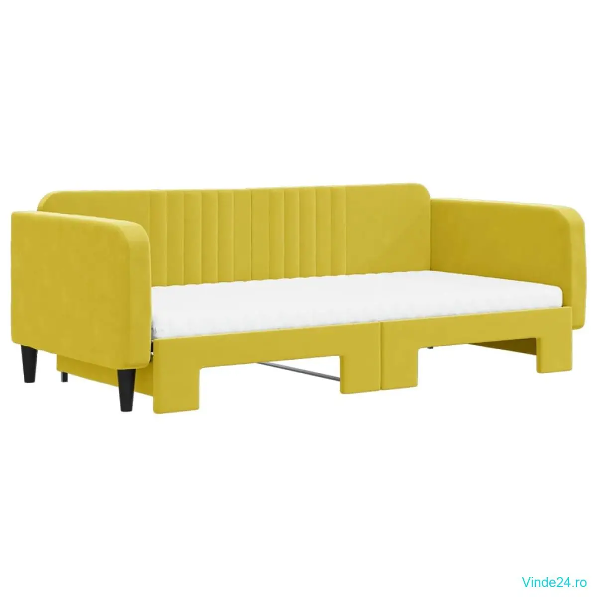 vidaXL Pat de zi cu extensie și saltea, galben, 100x200 cm, catifea