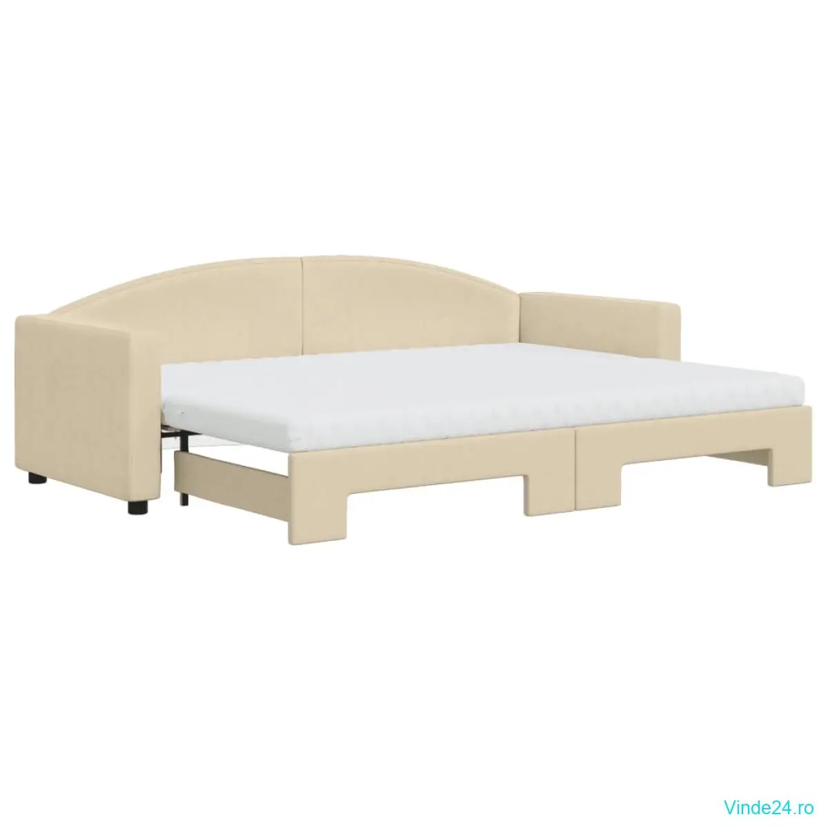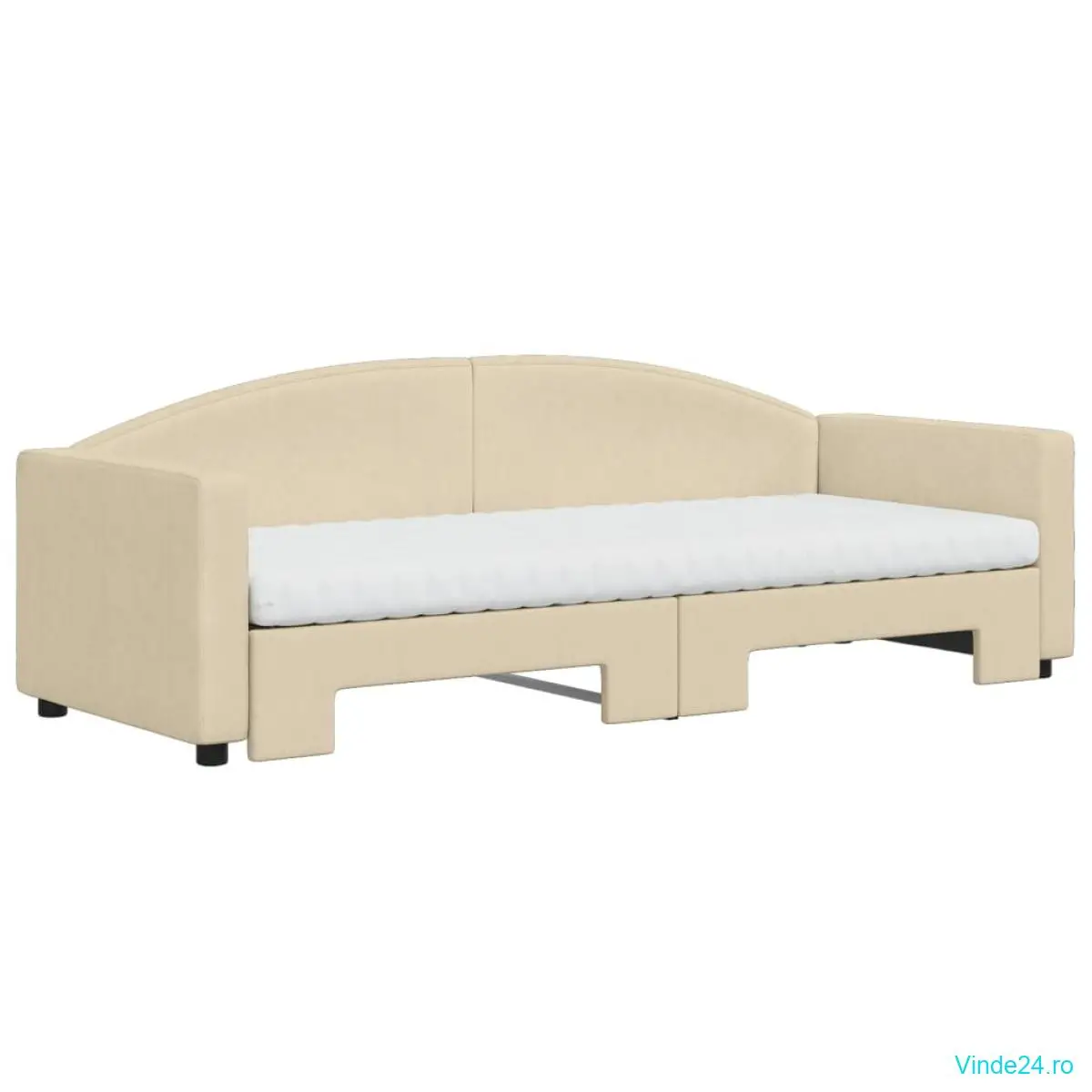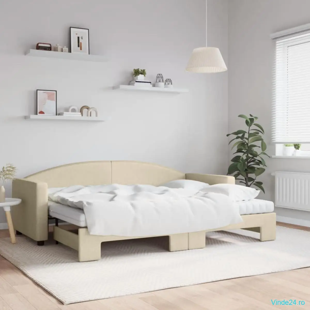 vidaXL Pat de zi cu extensie și saltele, crem, 80x200 cm, textil