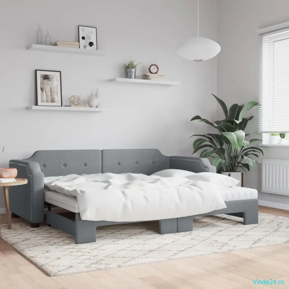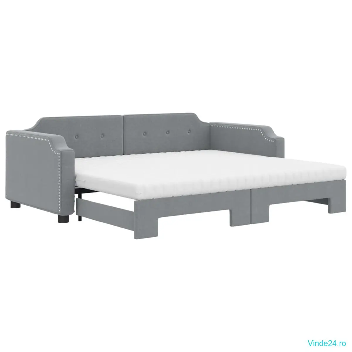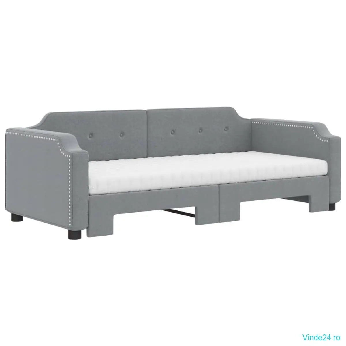vidaXL Pat de zi cu extensie și saltele, gri deschis, 80x200 cm textil