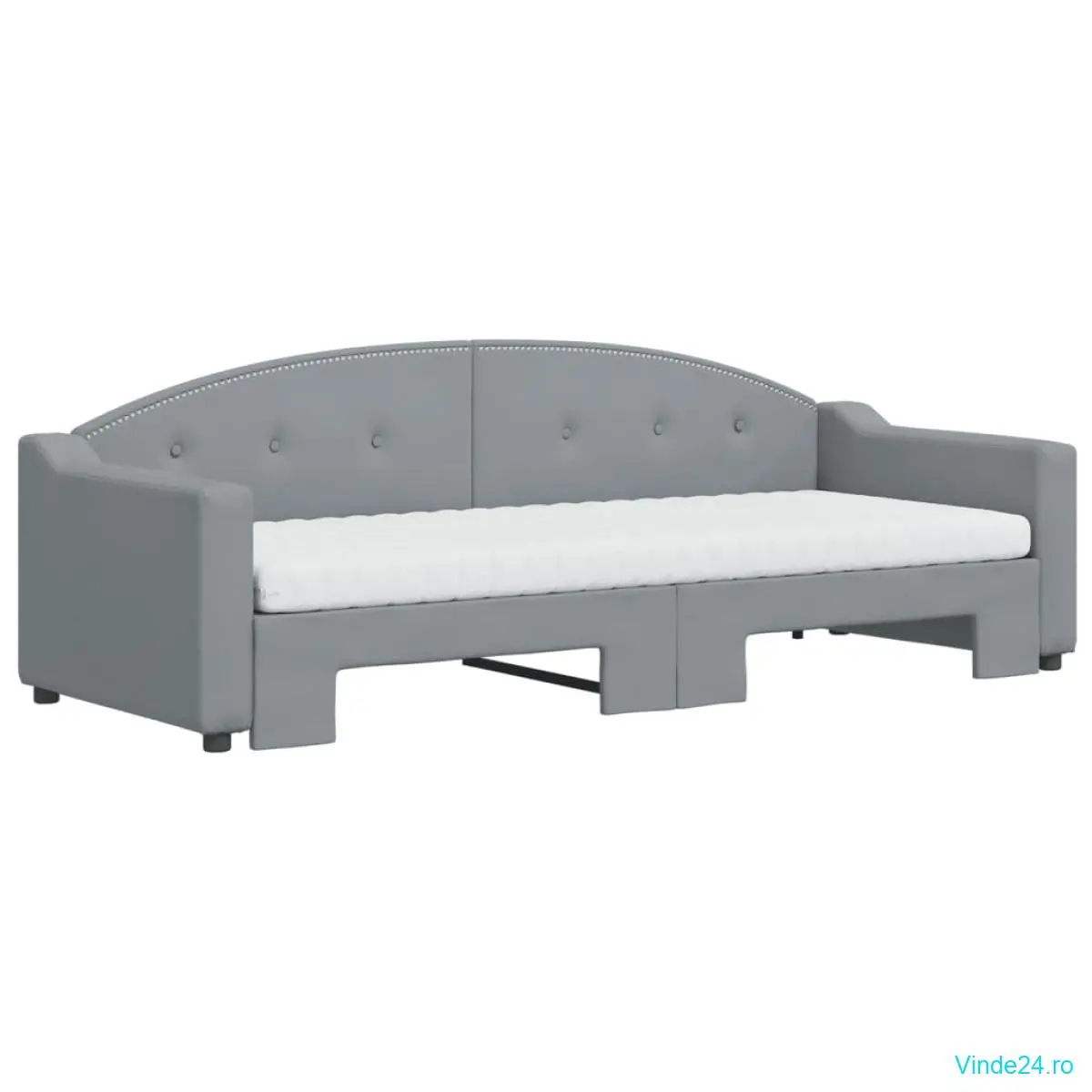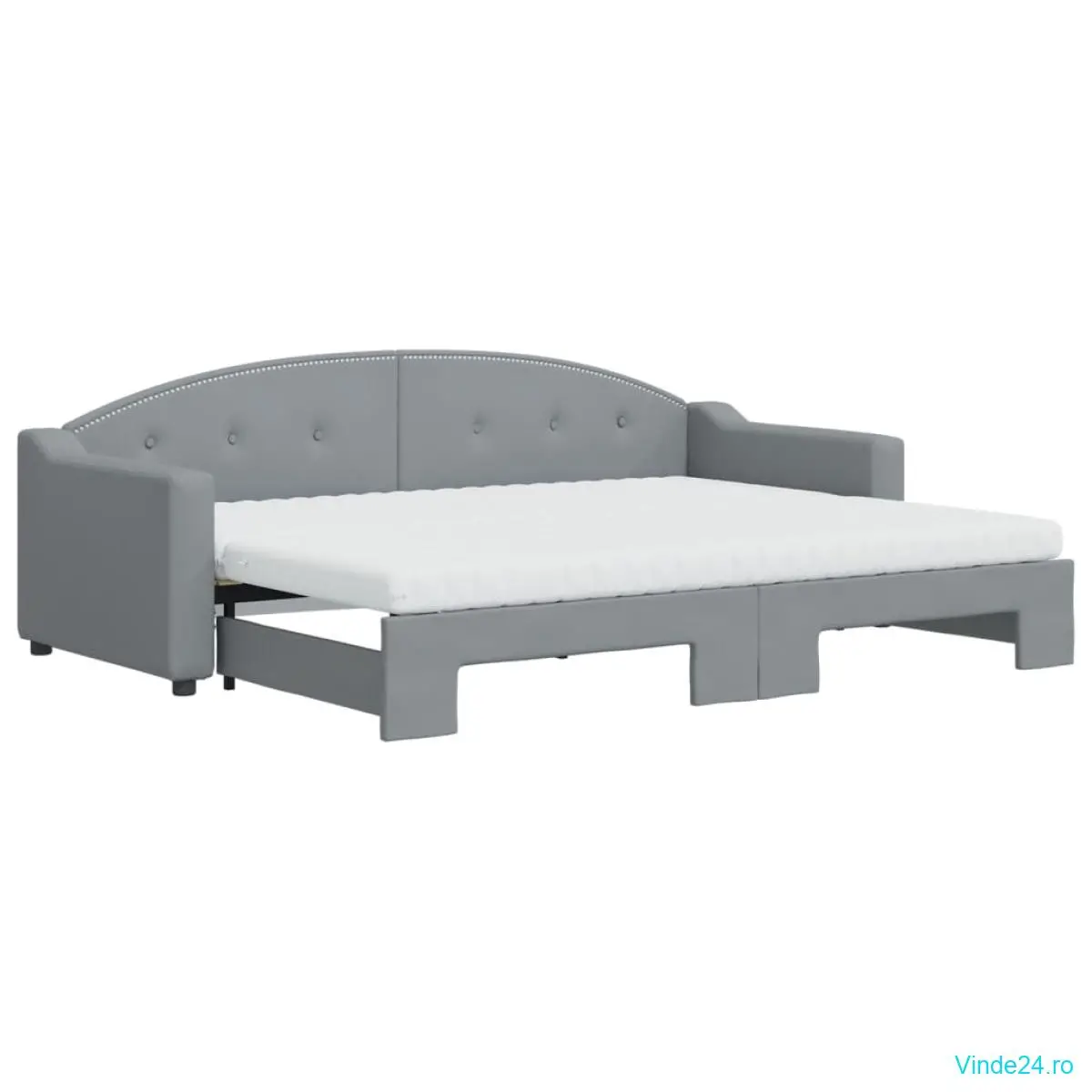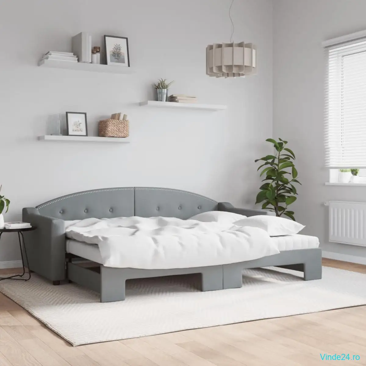 vidaXL Pat de zi cu extensie și saltele, gri deschis, 80x200 cm textil