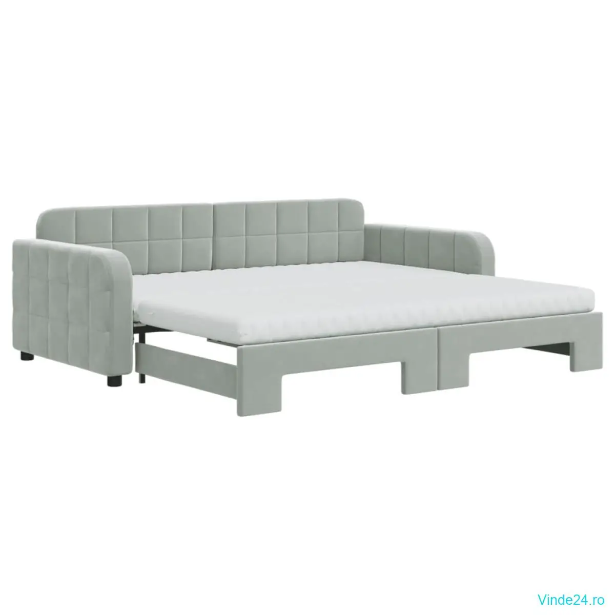 vidaXL Pat de zi cu extensie și saltele, gri deschis 90x190 cm catifea