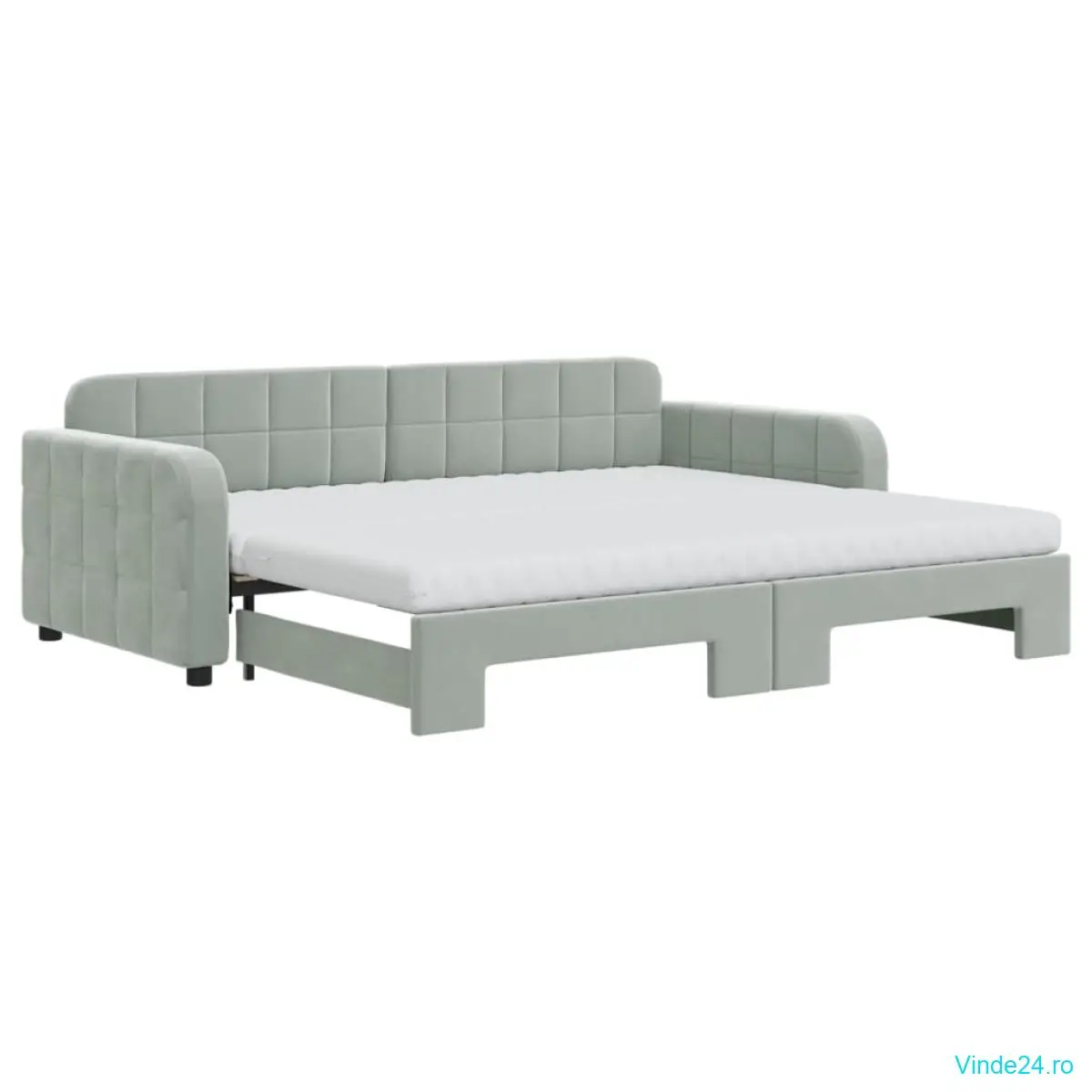 vidaXL Pat de zi cu extensie și saltele, gri deschis 90x200 cm catifea