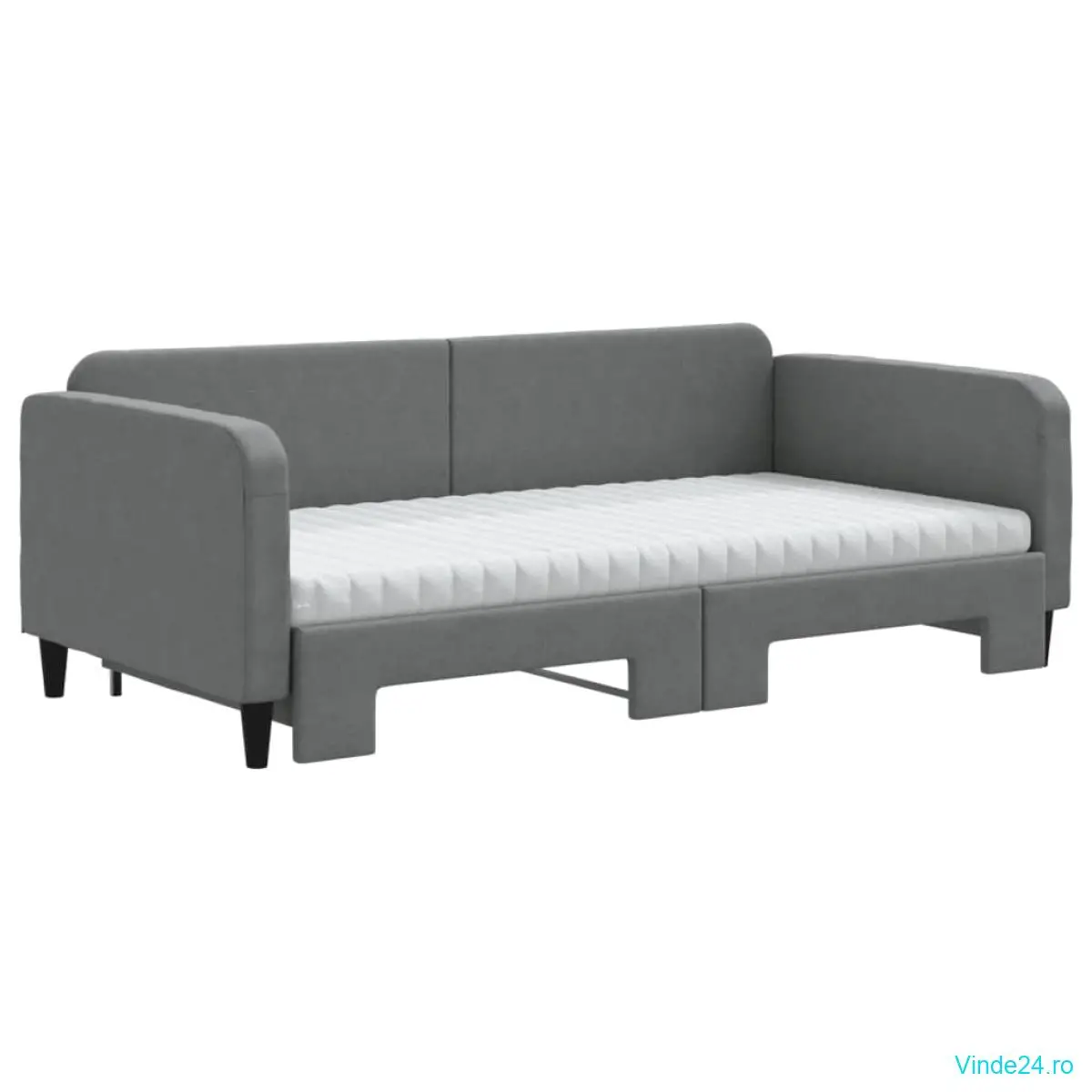 vidaXL Pat de zi cu extensie și saltele, gri închis, 100x200 cm textil