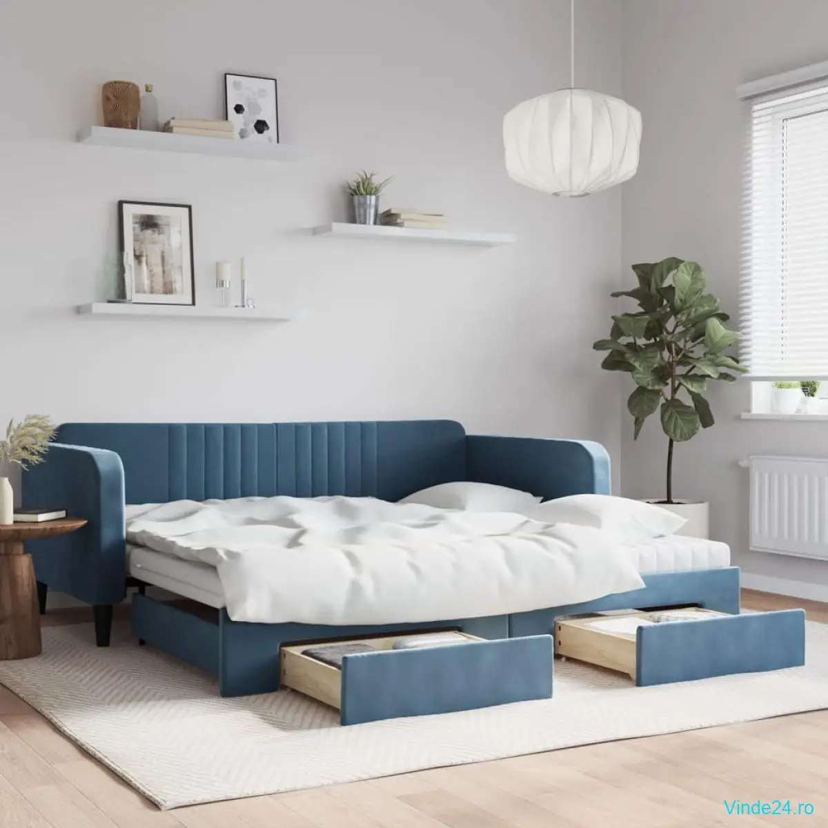 - Spațiu amplu de depozitare: Acest pat pentru oaspeți are două sertare cu roți care oferă spațiu amplu pentru depozitarea hainelor, șosetelor, jucăriilor, pernelor, etc.