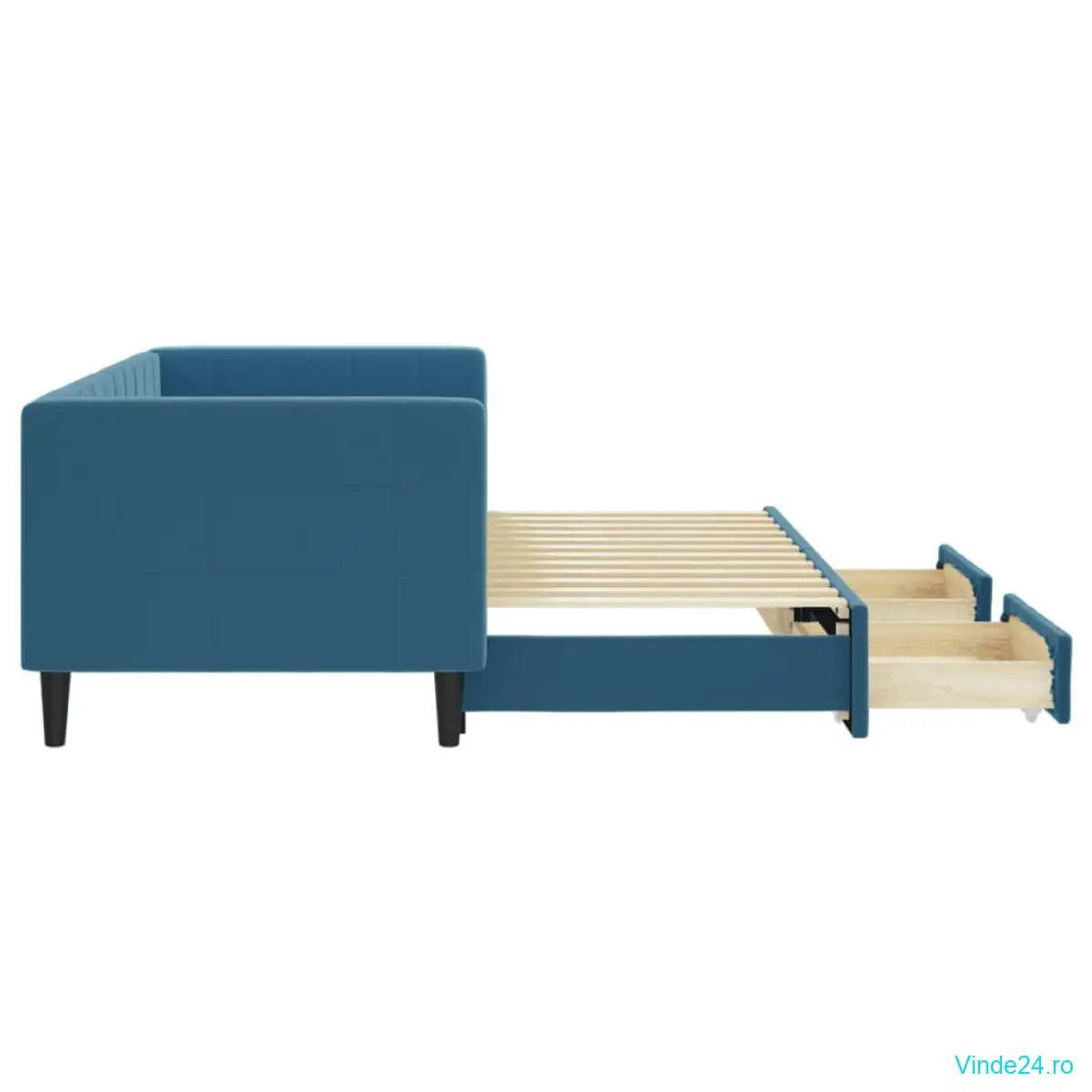 vidaXL Pat de zi cu extensie și sertare, albastru, 80x200 cm, catifea