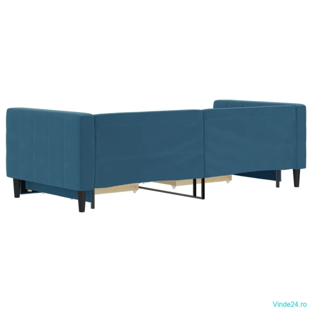 vidaXL Pat de zi cu extensie și sertare, albastru, 90x200 cm, catifea