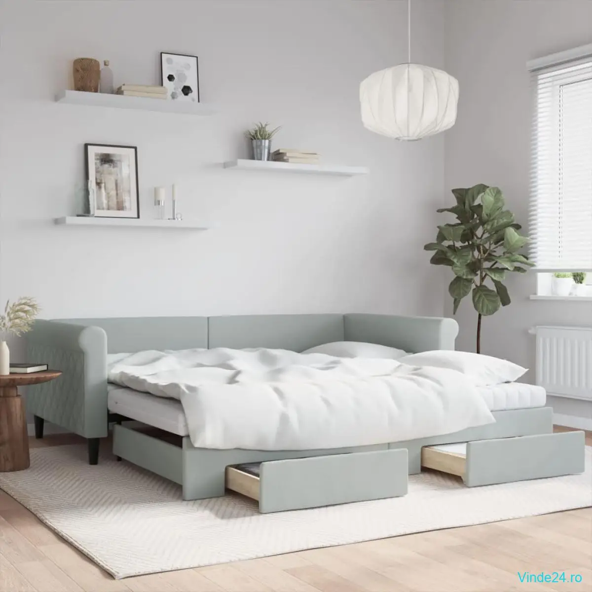 - Spațiu amplu de depozitare: Acest pat pentru oaspeți are două sertare cu roți care oferă spațiu amplu pentru depozitarea hainelor, șosetelor, jucăriilor, pernelor, etc.