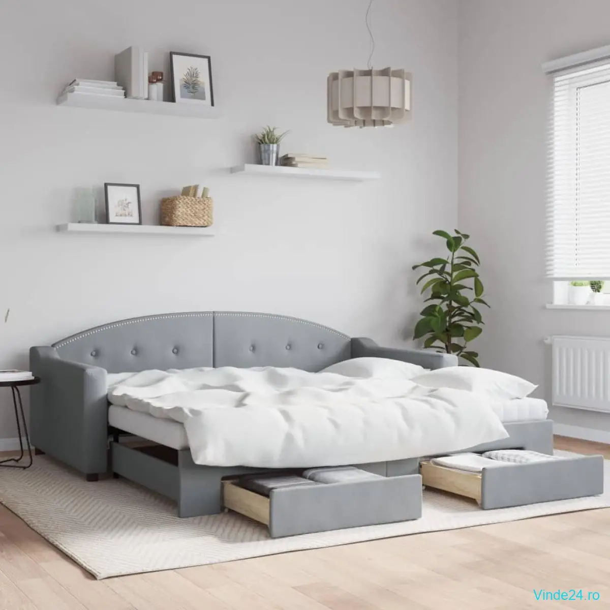 - Spațiu amplu de depozitare: Acest pat pentru oaspeți are două sertare cu roți care oferă spațiu amplu pentru depozitarea hainelor, șosetelor, jucăriilor, pernelor, etc.