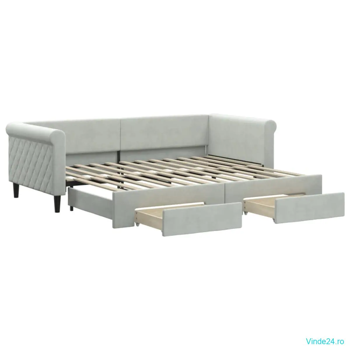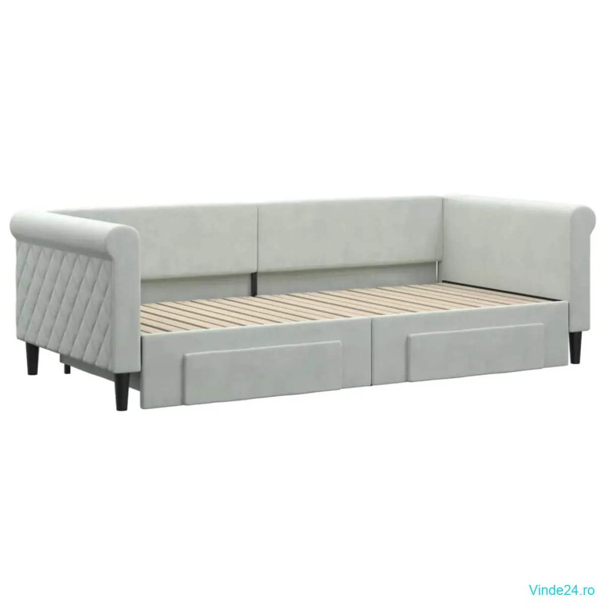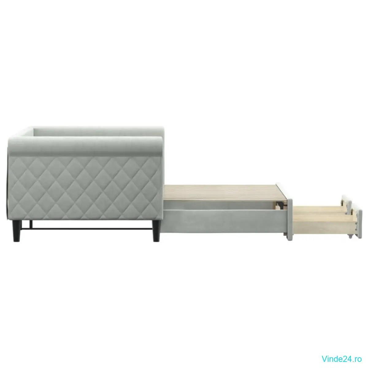 vidaXL Pat de zi cu extensie și sertare, gri deschis 90x200 cm catifea