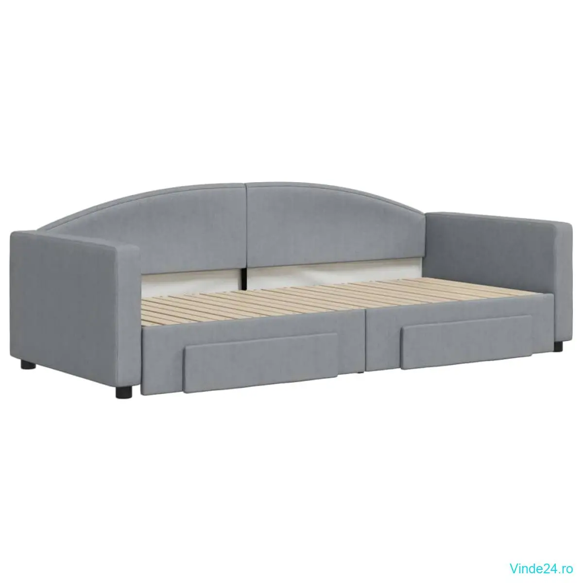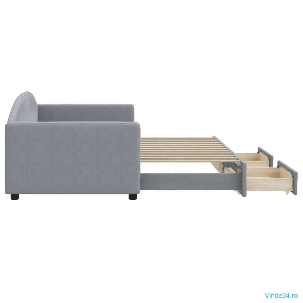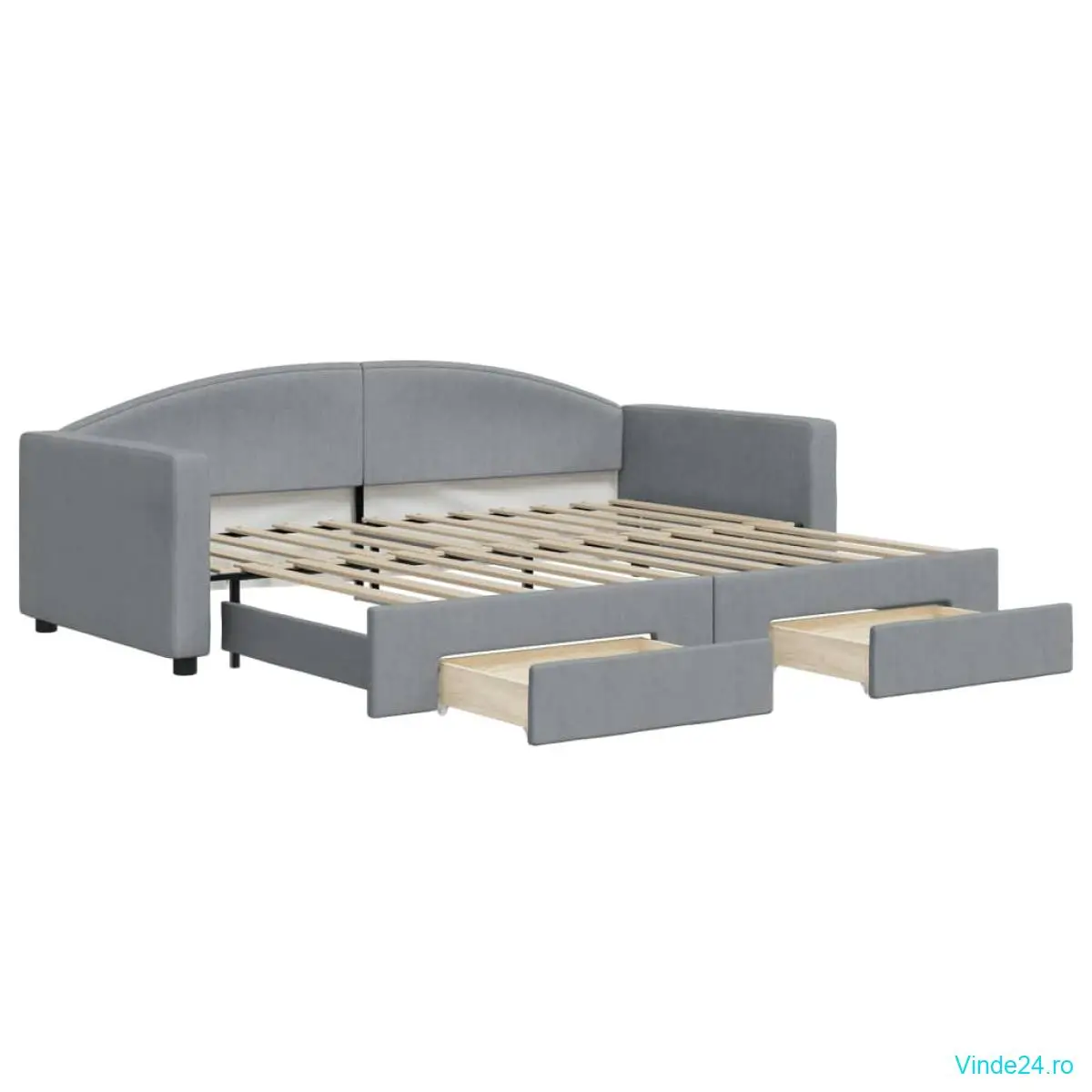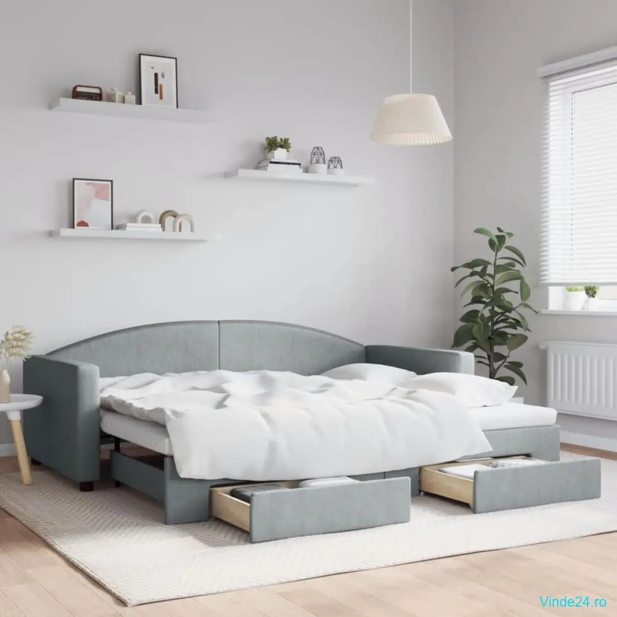 vidaXL Pat de zi cu extensie și sertare, gri deschis, 90x200 cm textil