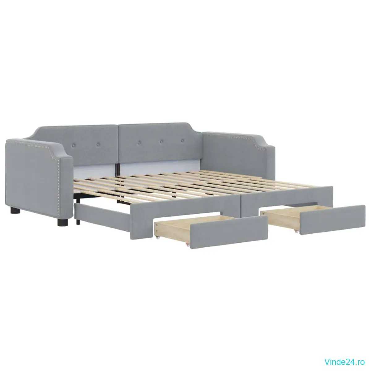 - Spațiu amplu de depozitare: Acest pat pentru oaspeți are două sertare cu roți care oferă spațiu amplu pentru depozitarea hainelor, șosetelor, jucăriilor, pernelor, etc.