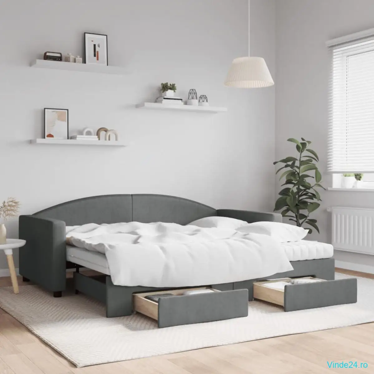 - Spațiu amplu de depozitare: Acest pat pentru oaspeți are două sertare cu roți care oferă spațiu amplu pentru depozitarea hainelor, șosetelor, jucăriilor, pernelor, etc.
