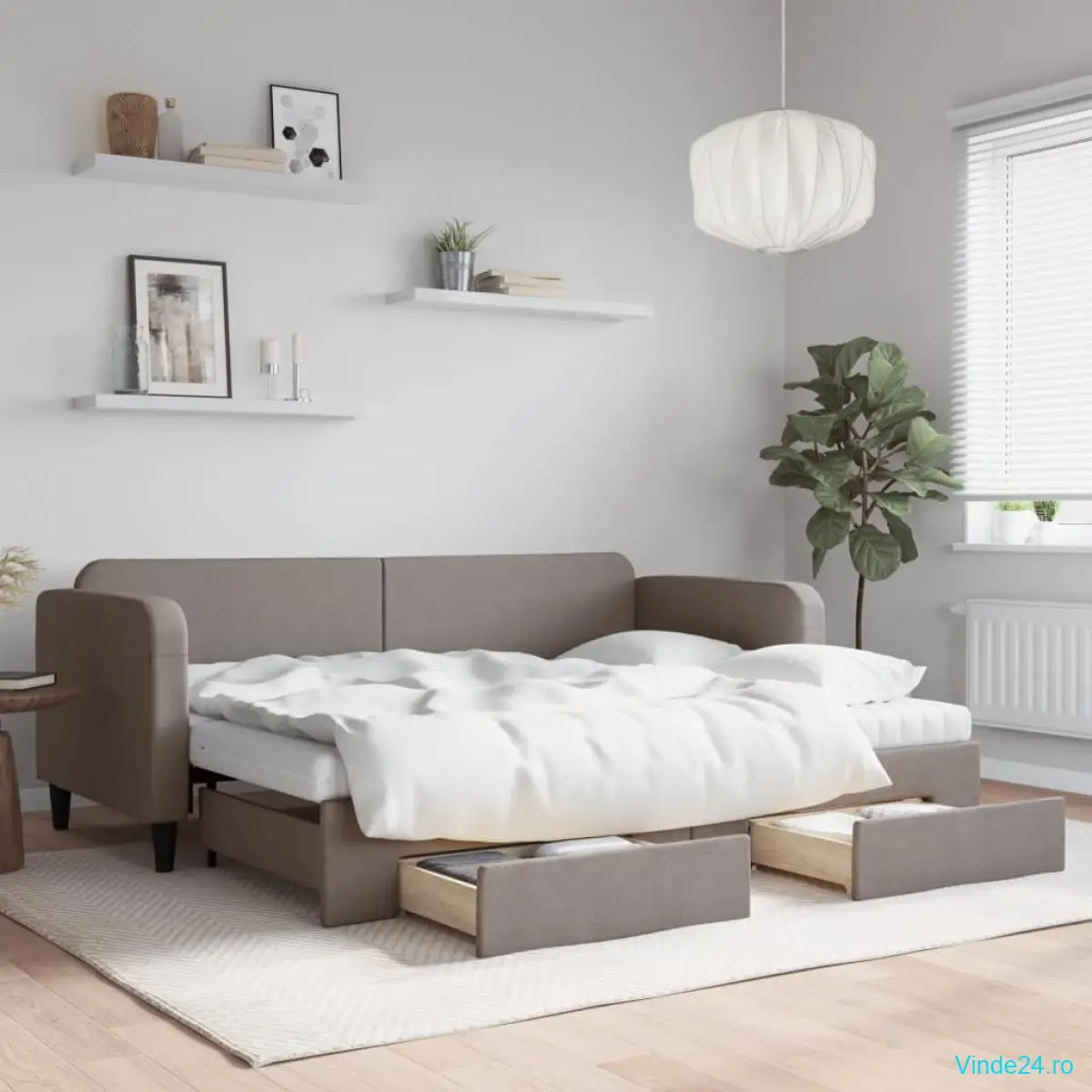 - Spațiu amplu de depozitare: Acest pat pentru oaspeți are două sertare cu roți care oferă spațiu amplu pentru depozitarea hainelor, șosetelor, jucăriilor, pernelor, etc.