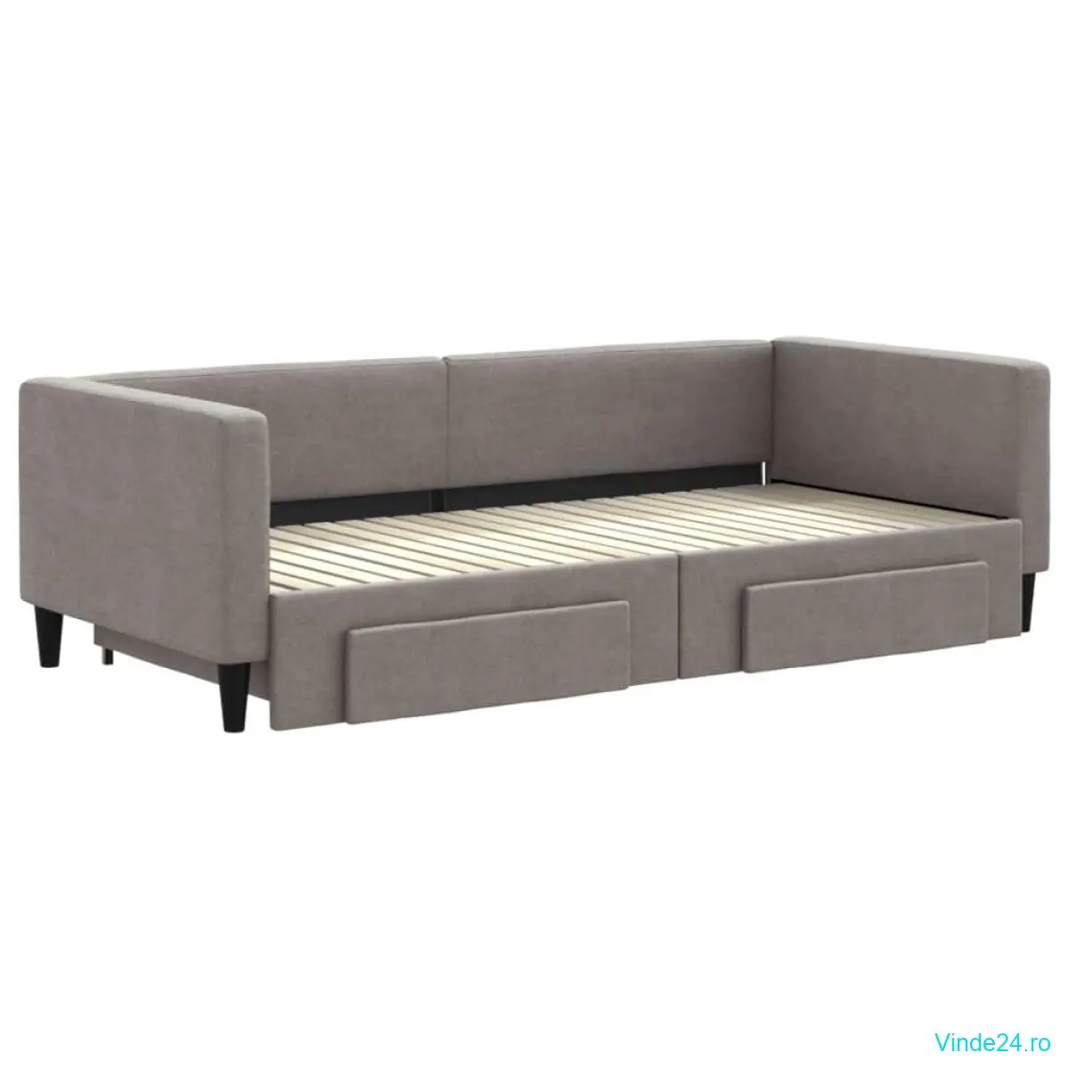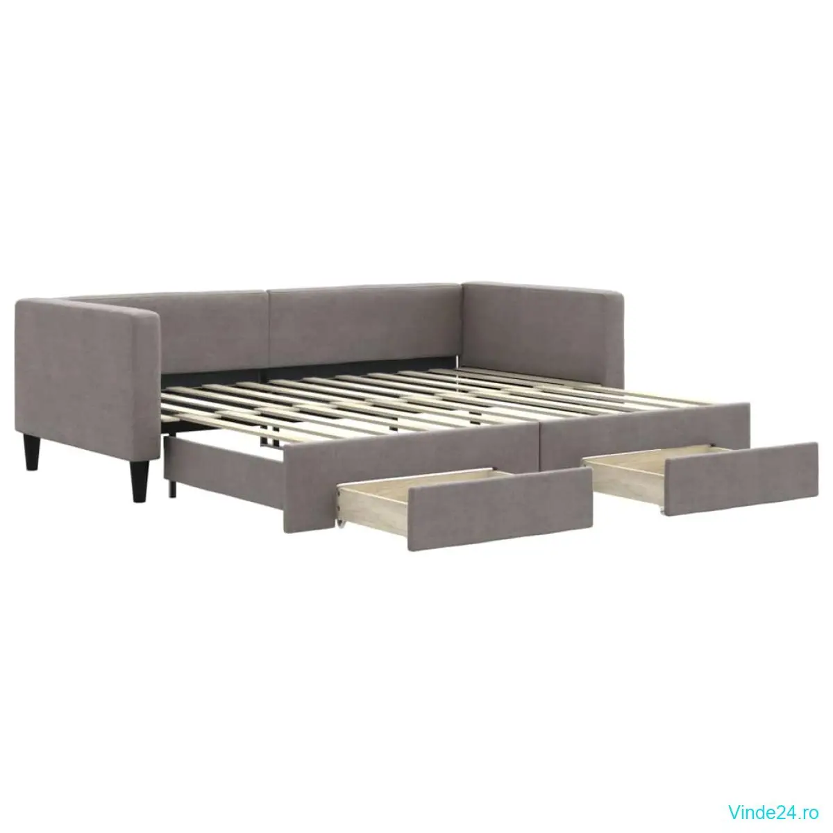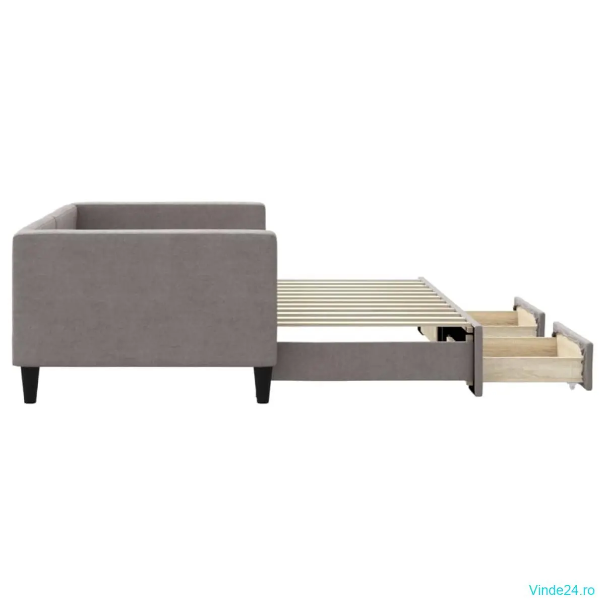 vidaXL Pat de zi cu extensie și sertare, gri taupe, 90x200 cm, textil