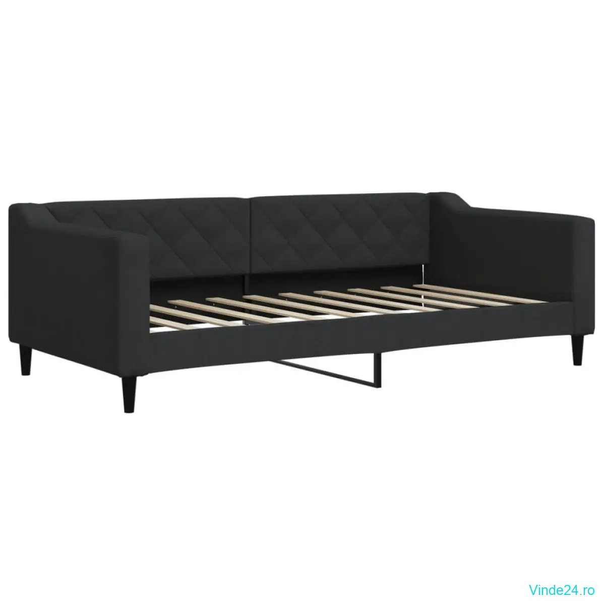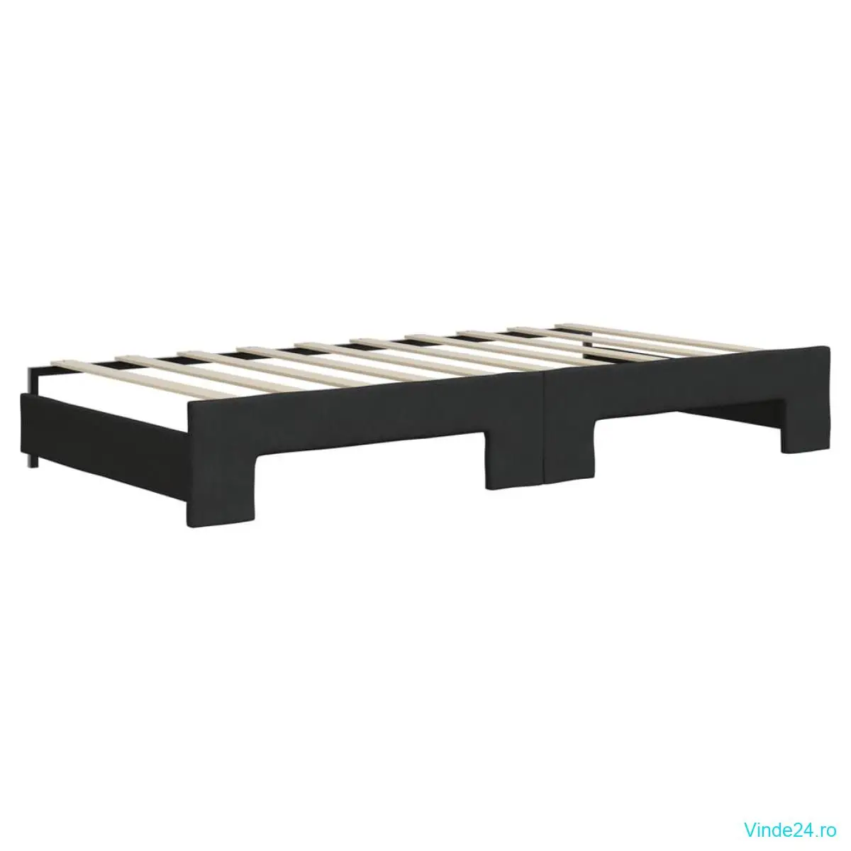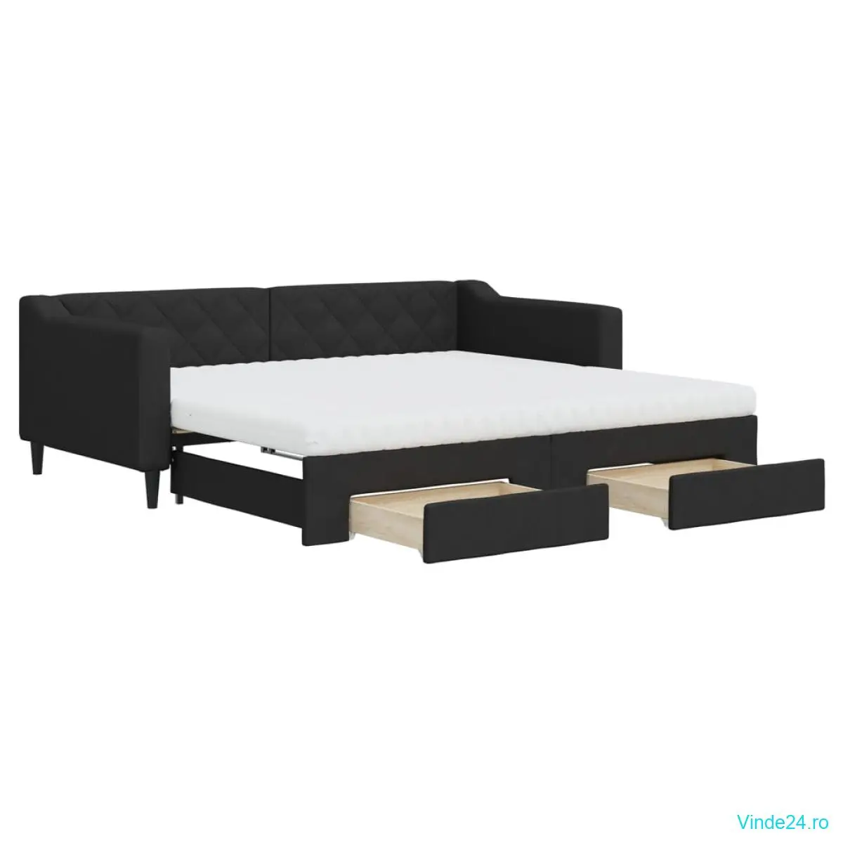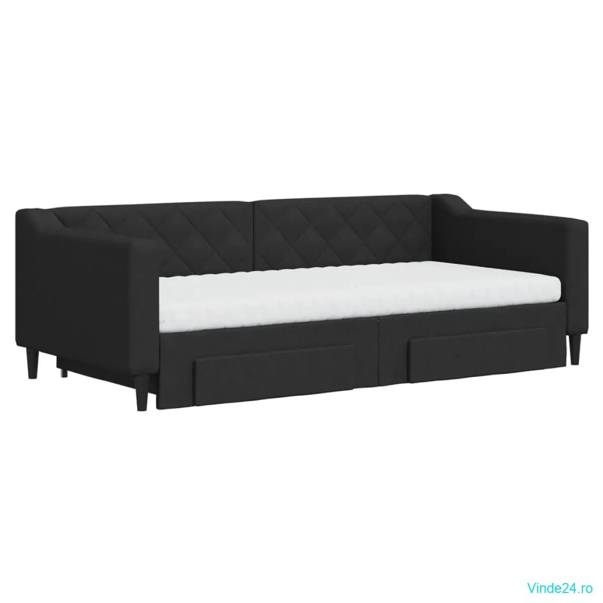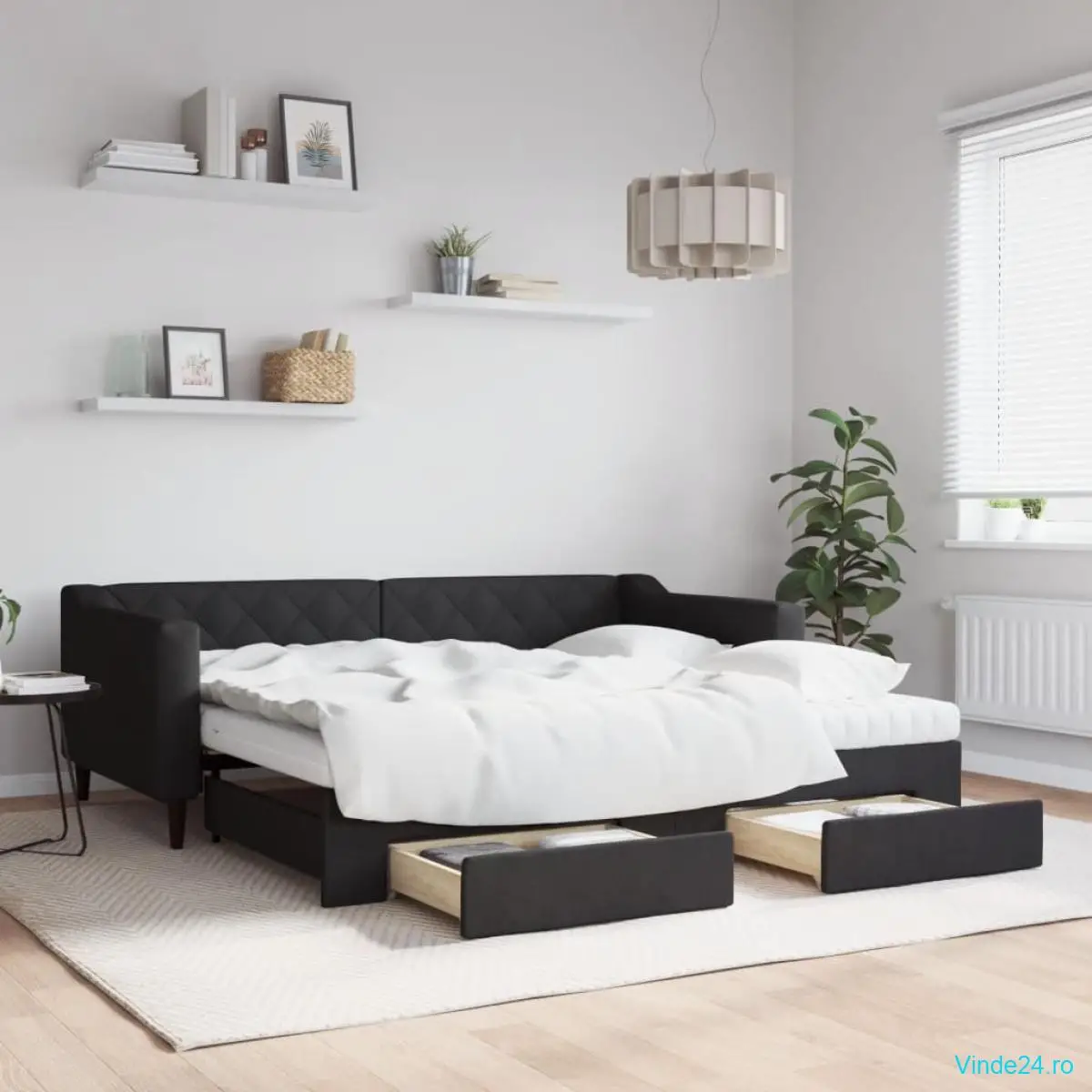 vidaXL Pat de zi cu extensie și sertare, negru, 90x190cm, textil