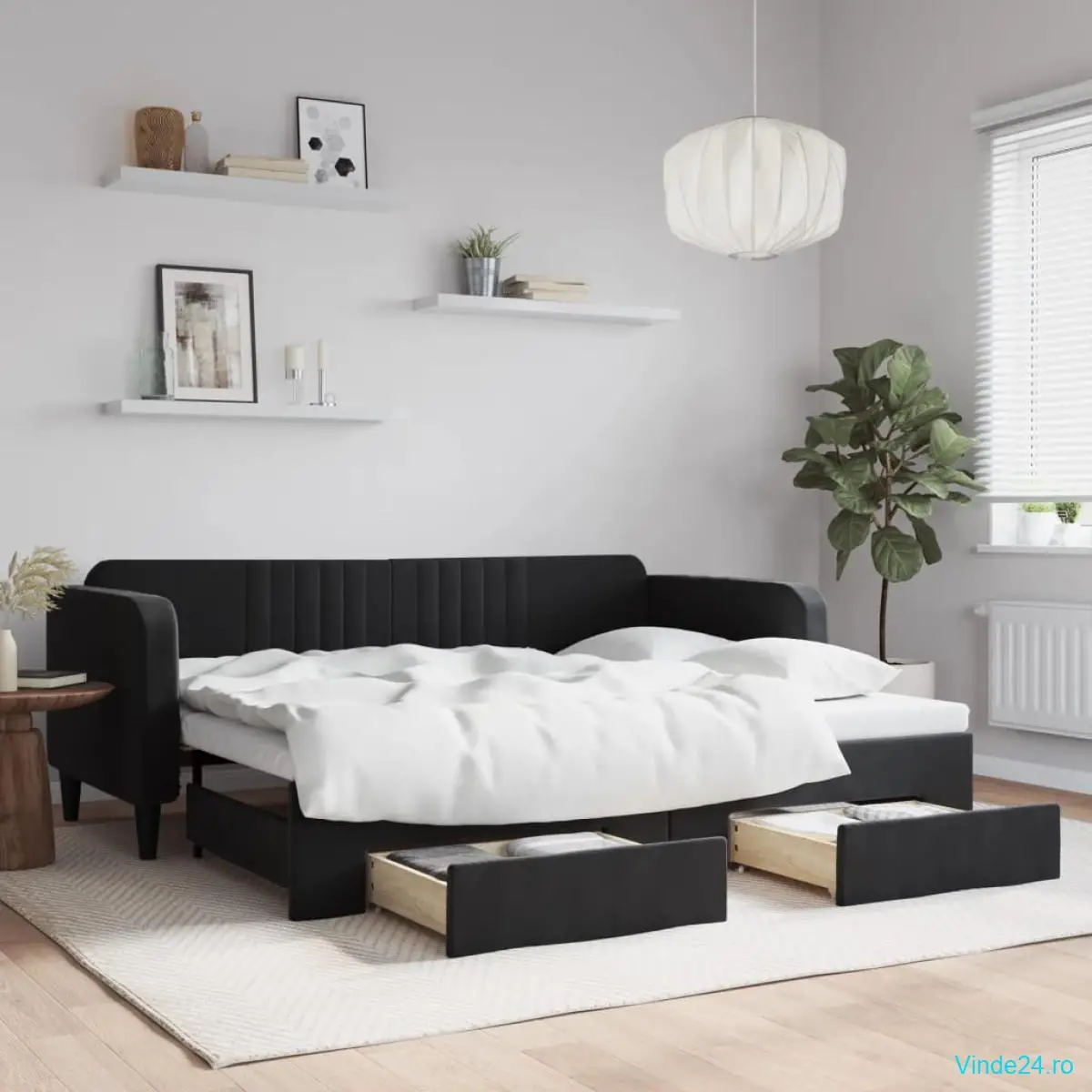 - Spațiu amplu de depozitare: Acest pat pentru oaspeți are două sertare cu roți care oferă spațiu amplu pentru depozitarea hainelor, șosetelor, jucăriilor, pernelor, etc.