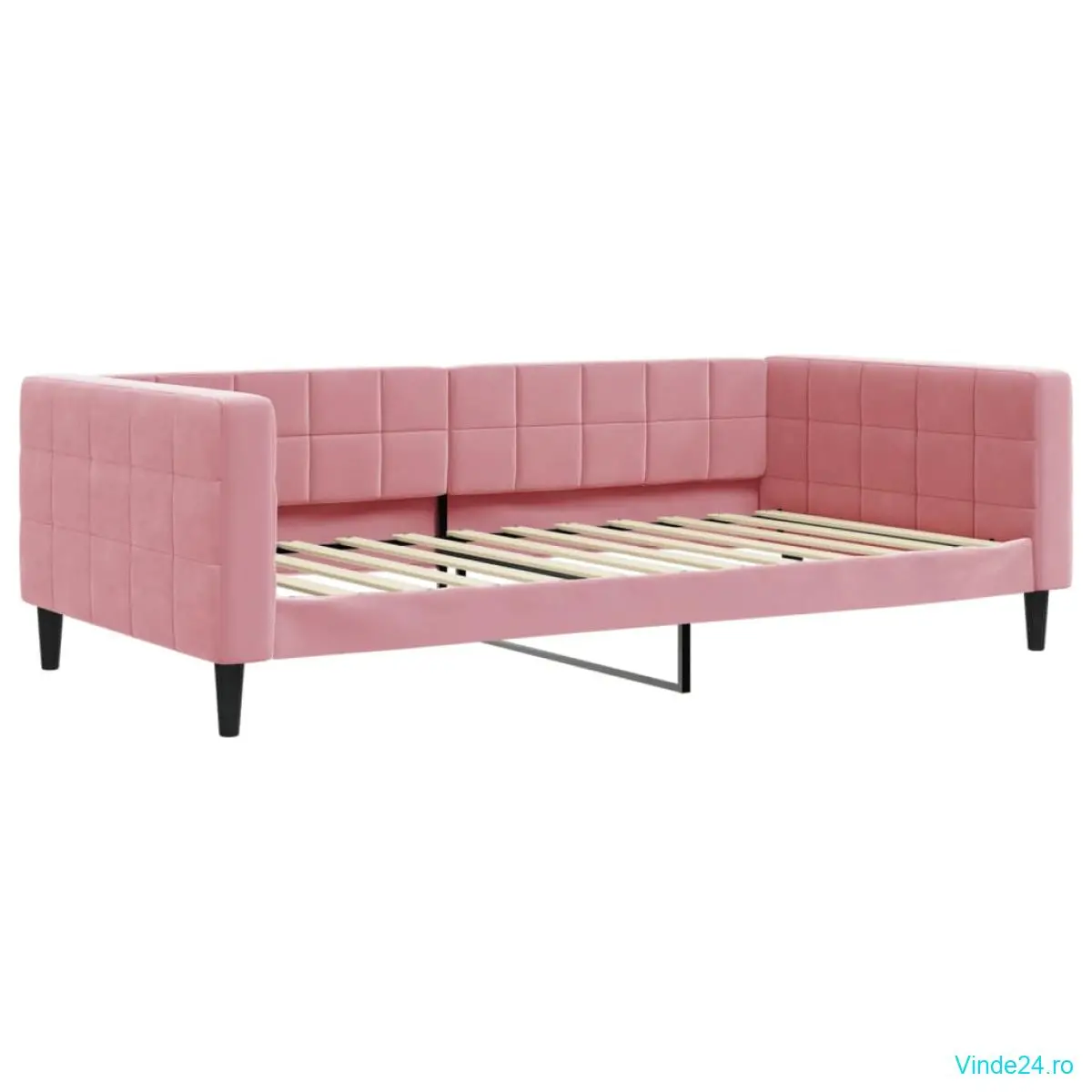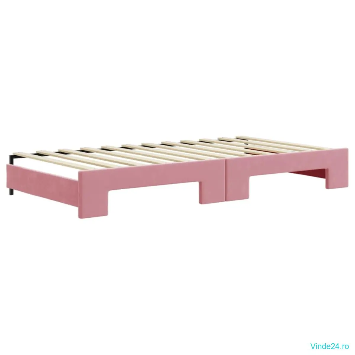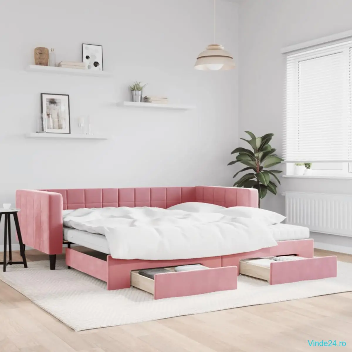 vidaXL Pat de zi cu extensie și sertare, roz, 100x200 cm, catifea