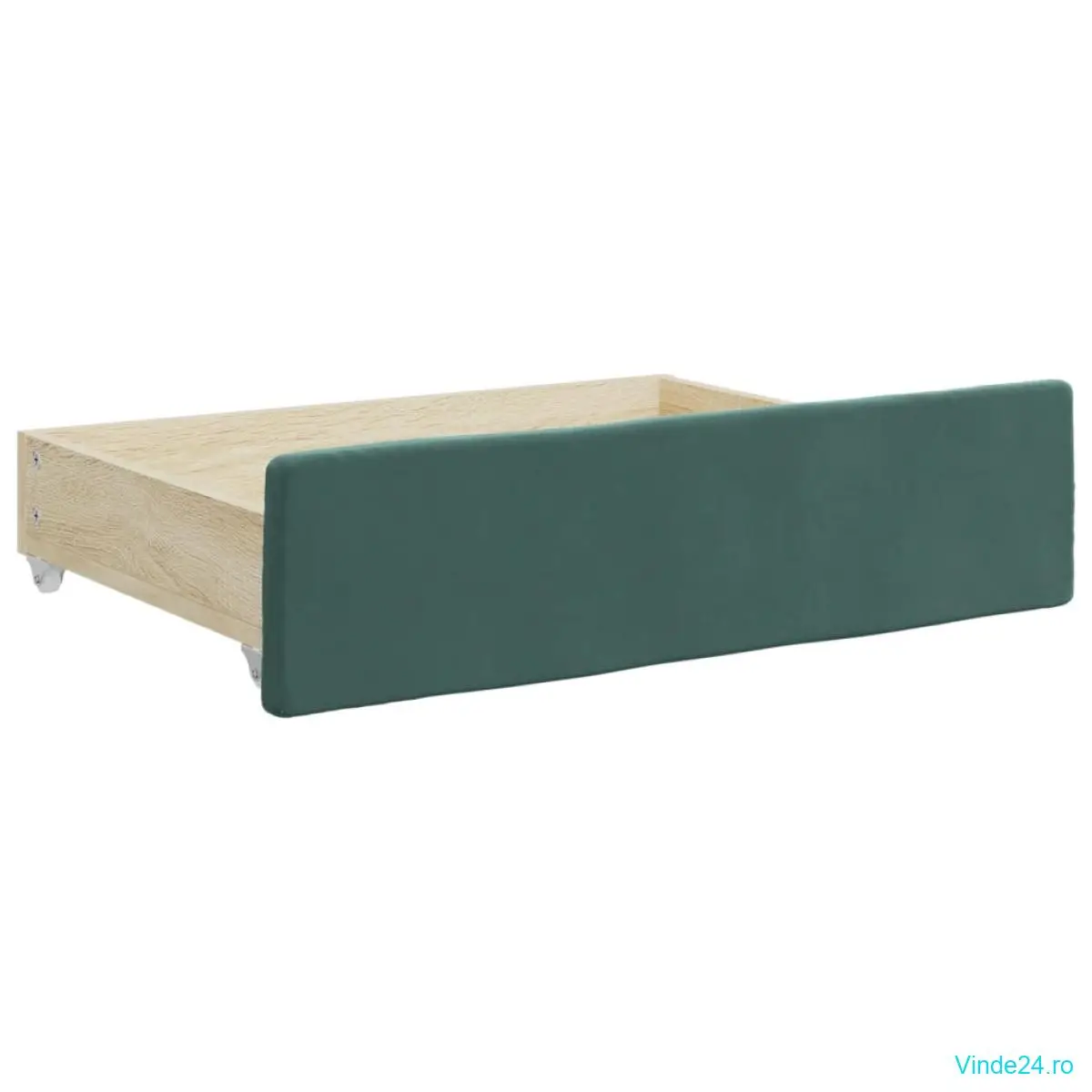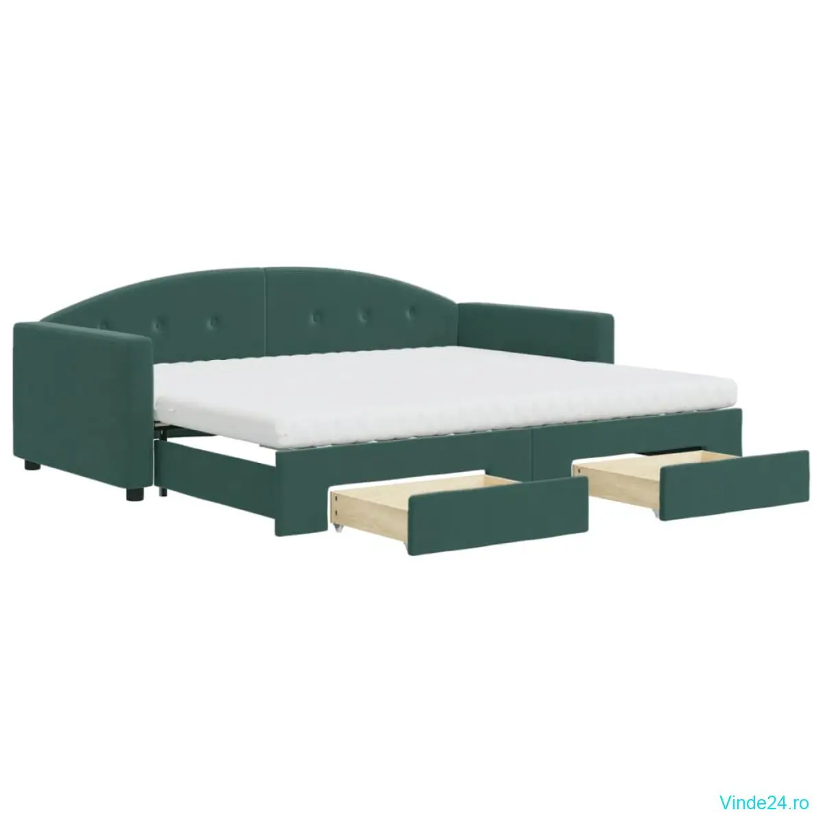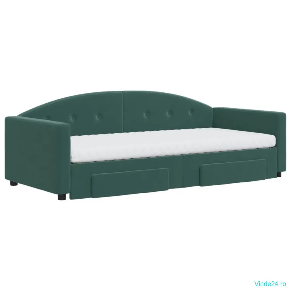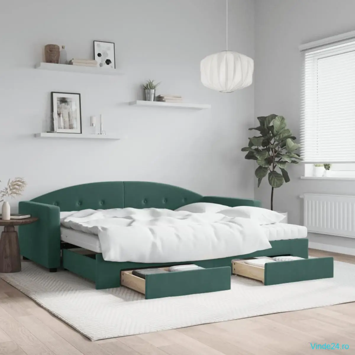 vidaXL Pat de zi cu extensie și sertare verde închis 90x200 cm catifea