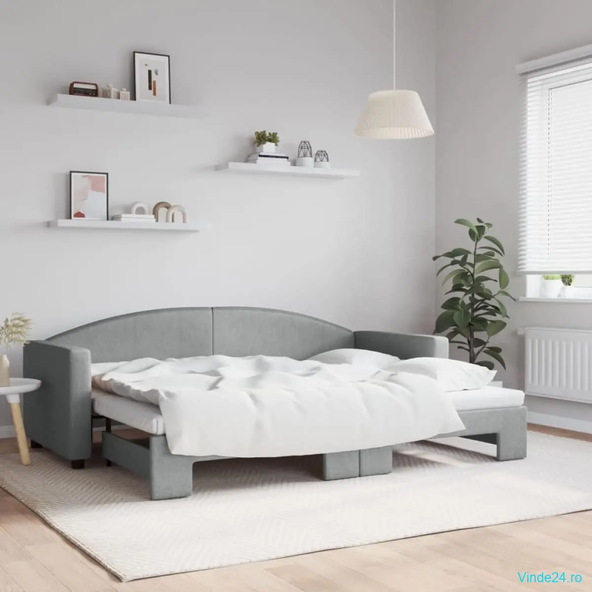 vidaXL Pat de zi cu extensie, gri deschis, 80x200 cm, textil
