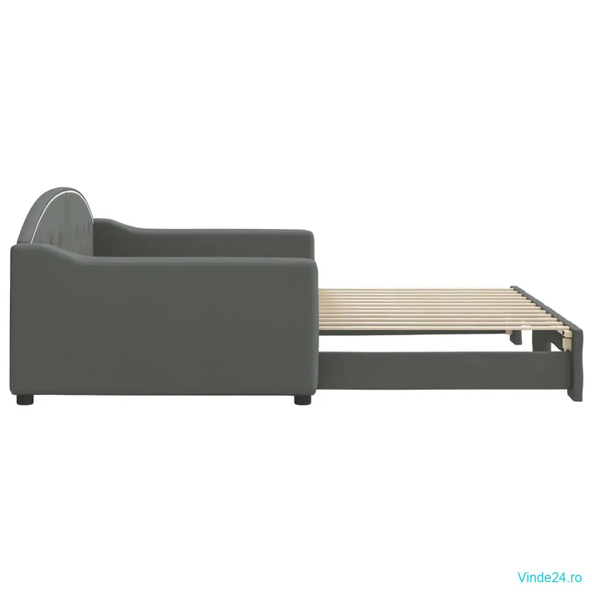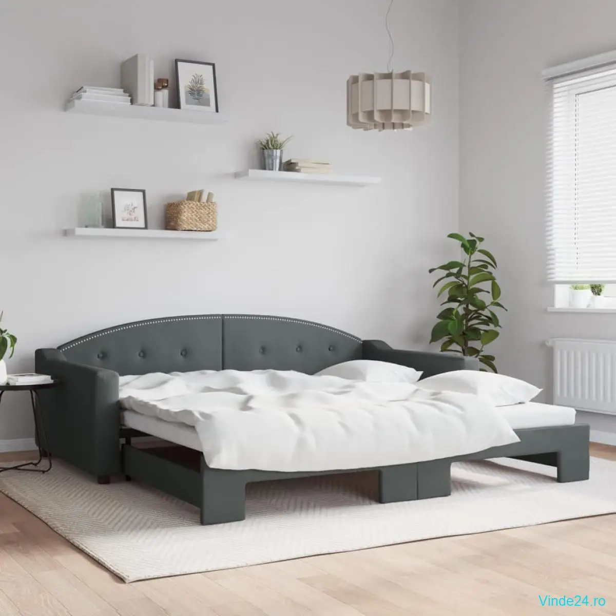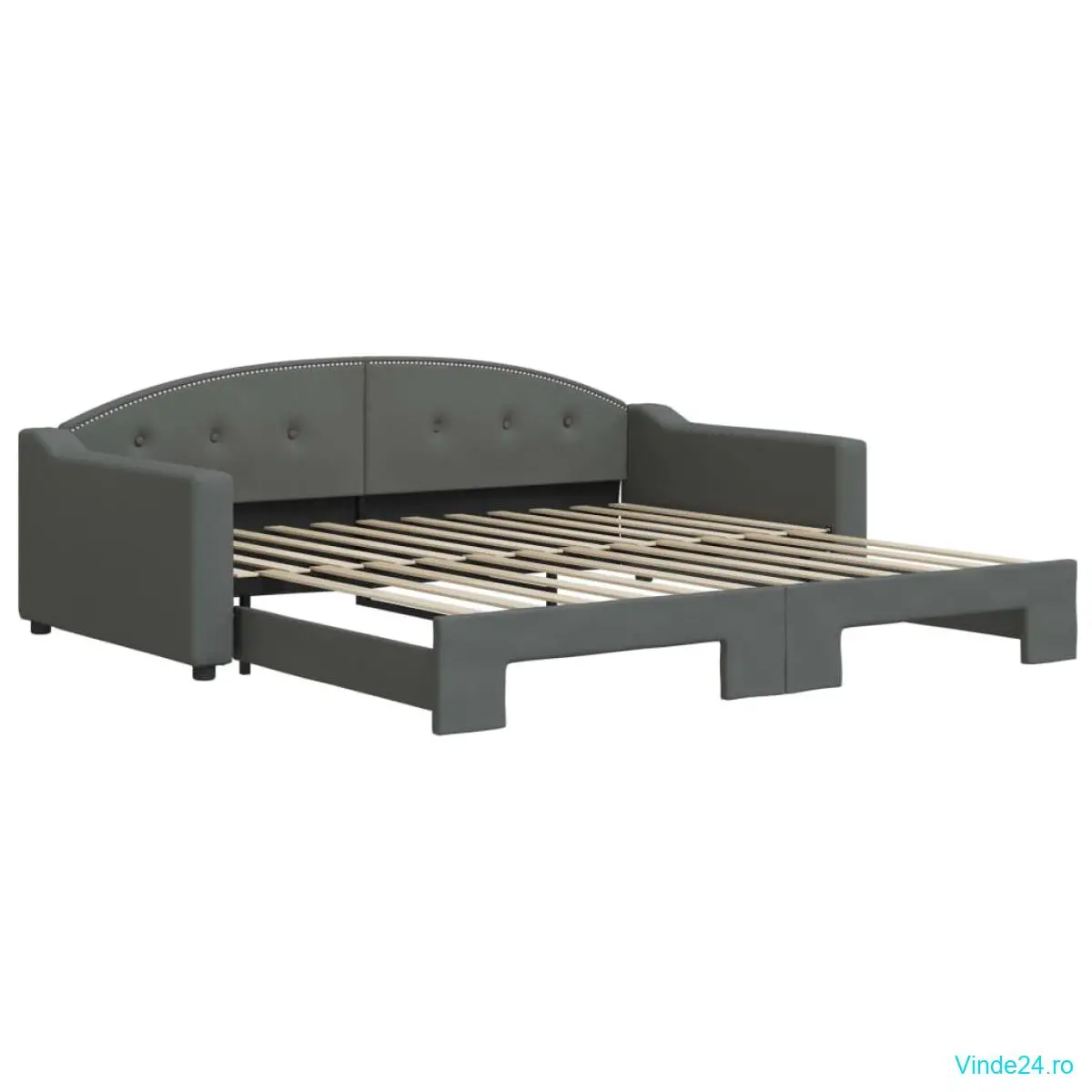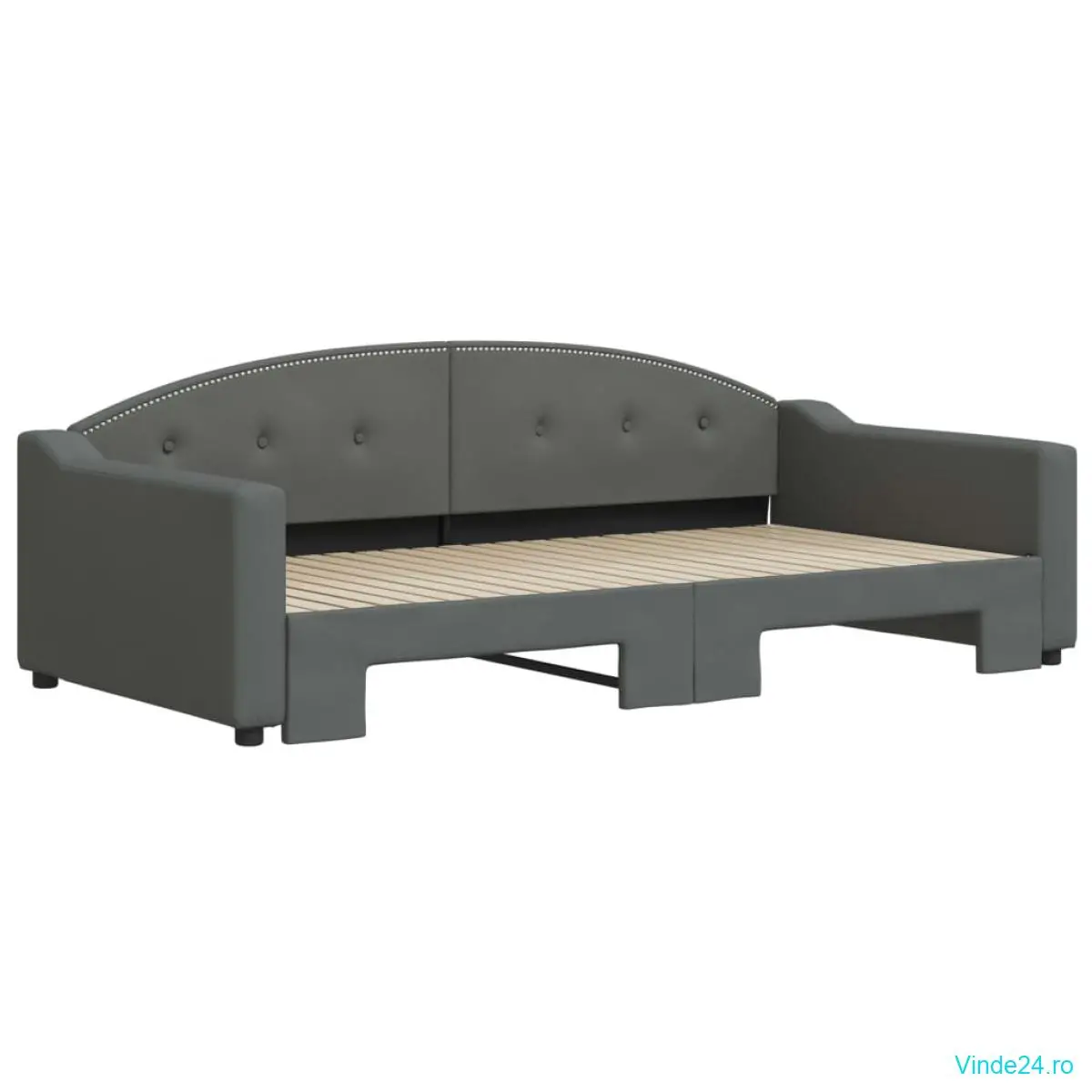 vidaXL Pat de zi cu extensie, gri închis, 100x200 cm, textil