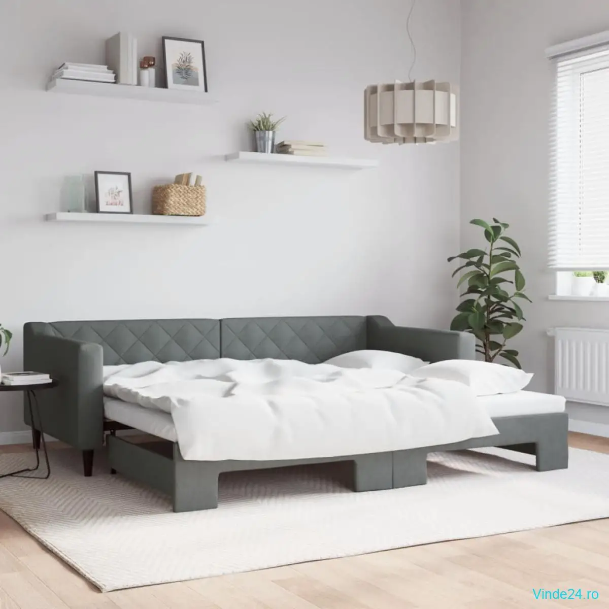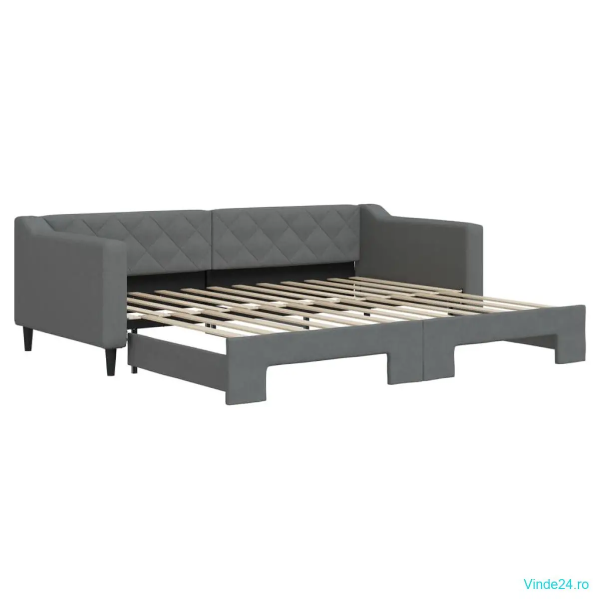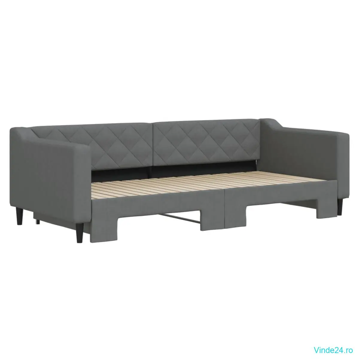 vidaXL Pat de zi cu extensie, gri închis, 90x200 cm, textil