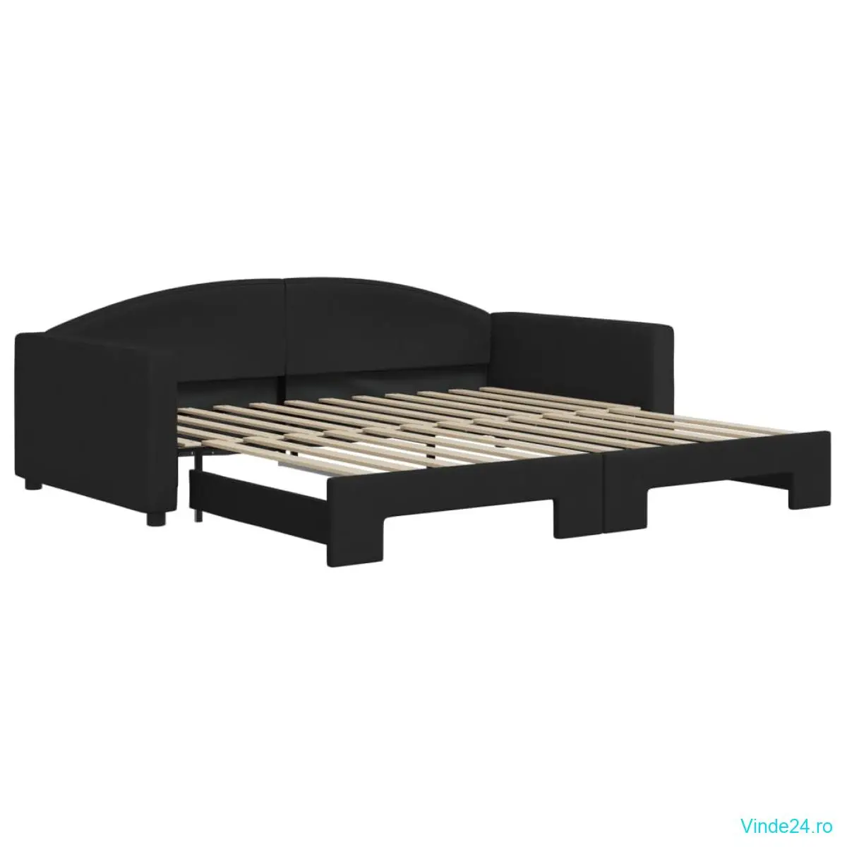 vidaXL Pat de zi cu extensie, negru, 100x200 cm, textil