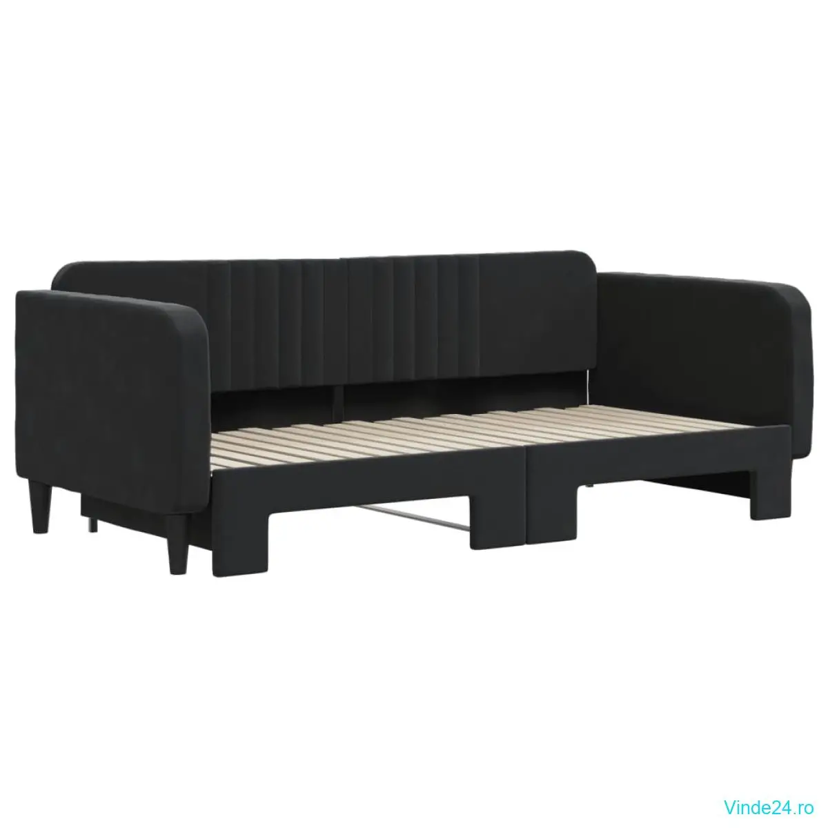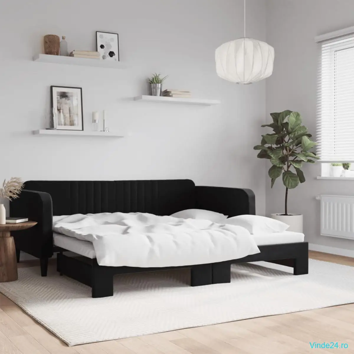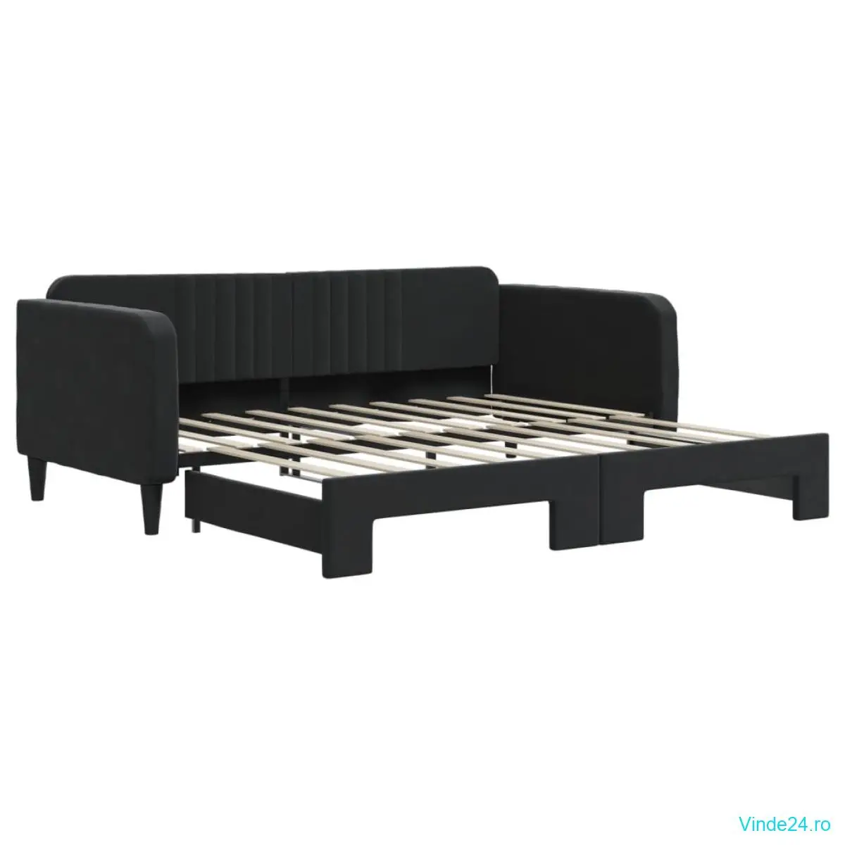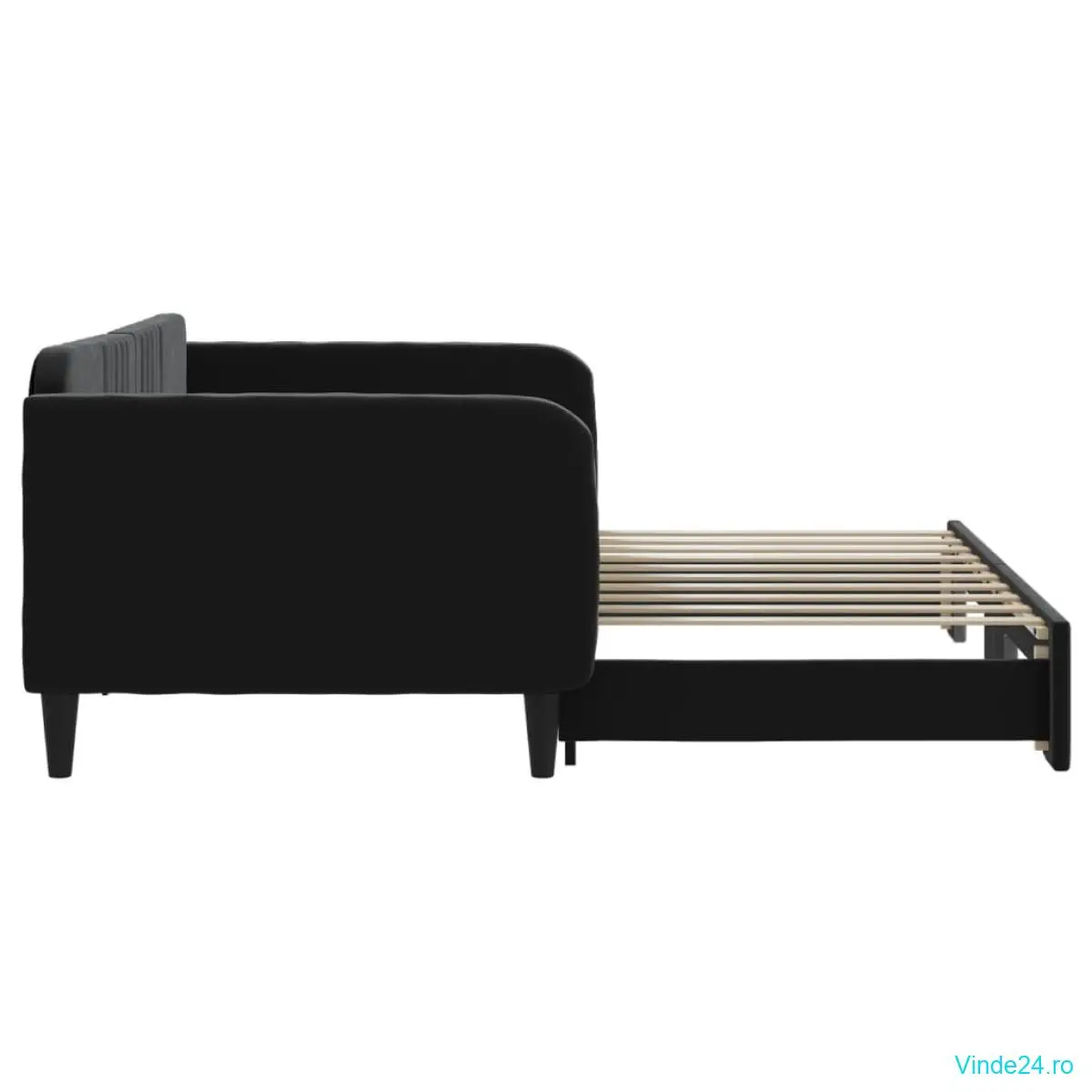 vidaXL Pat de zi cu extensie, negru, 90x190 cm, catifea