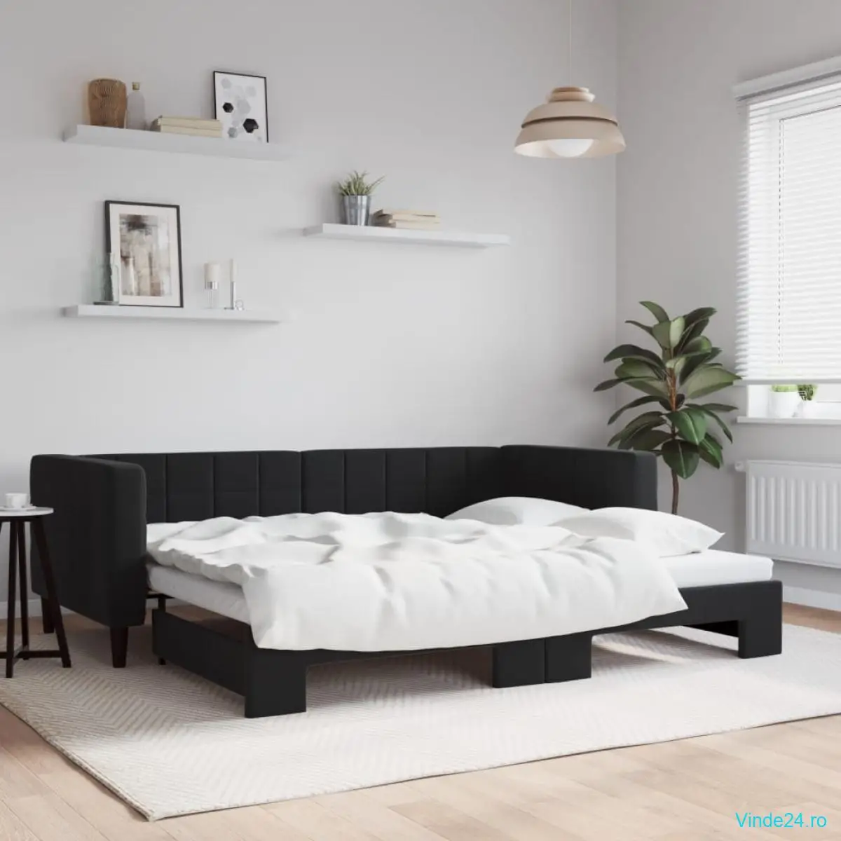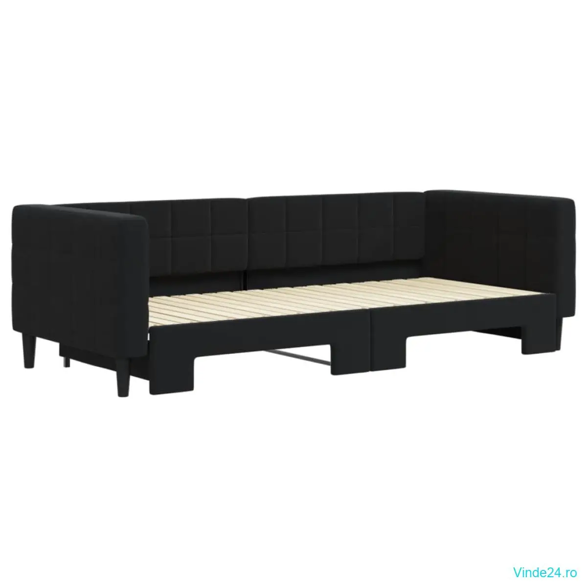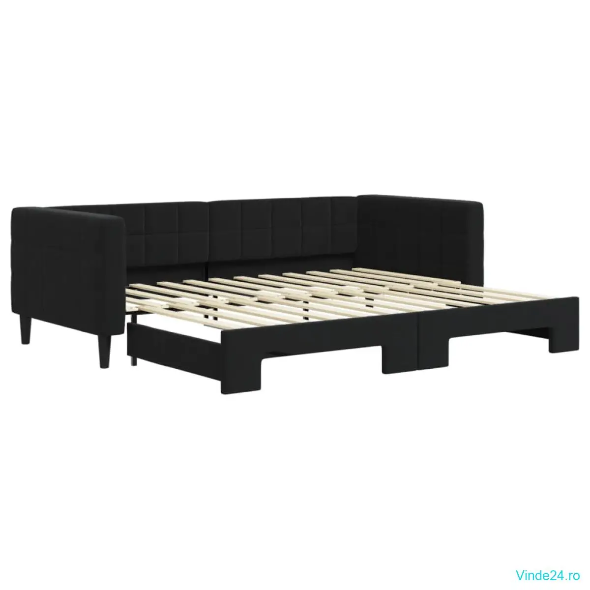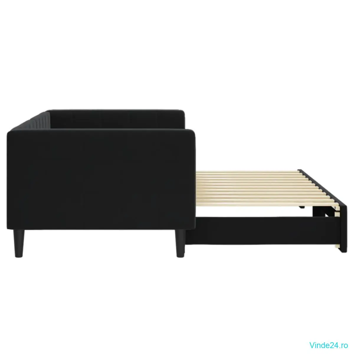 vidaXL Pat de zi cu extensie, negru, 90x200 cm, catifea