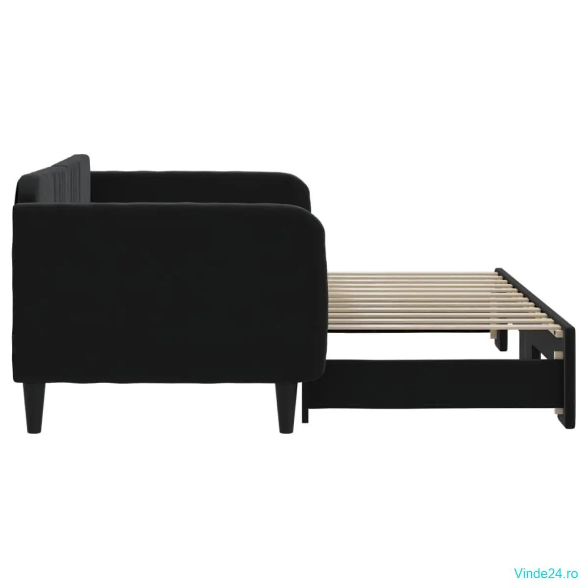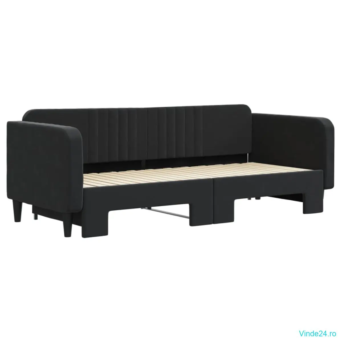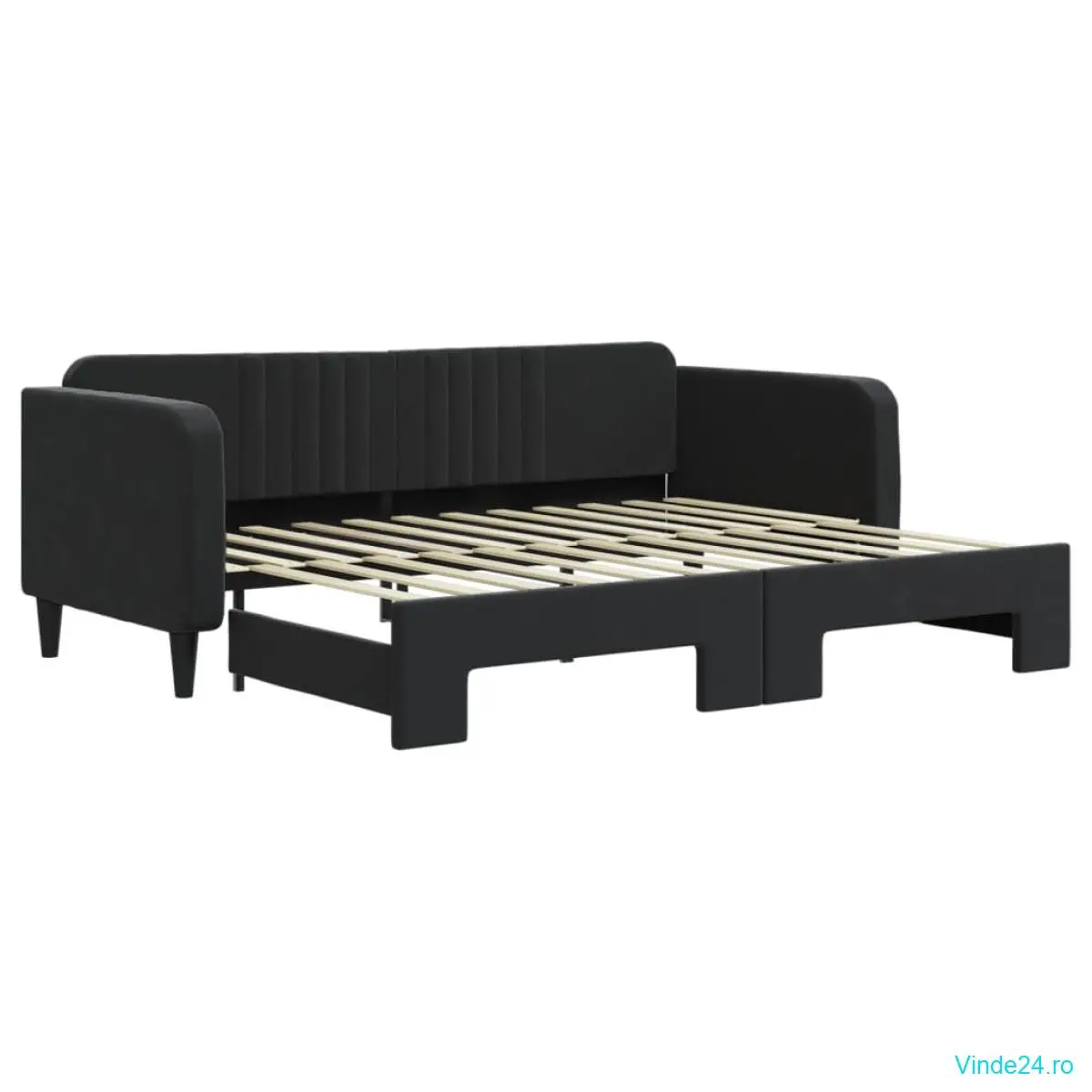 vidaXL Pat de zi cu extensie, negru, 90x200 cm, catifea