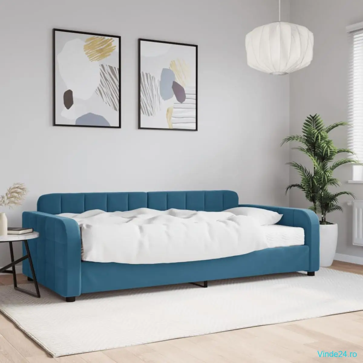 vidaXL Pat de zi cu saltea, albastru, 100x200 cm, catifea