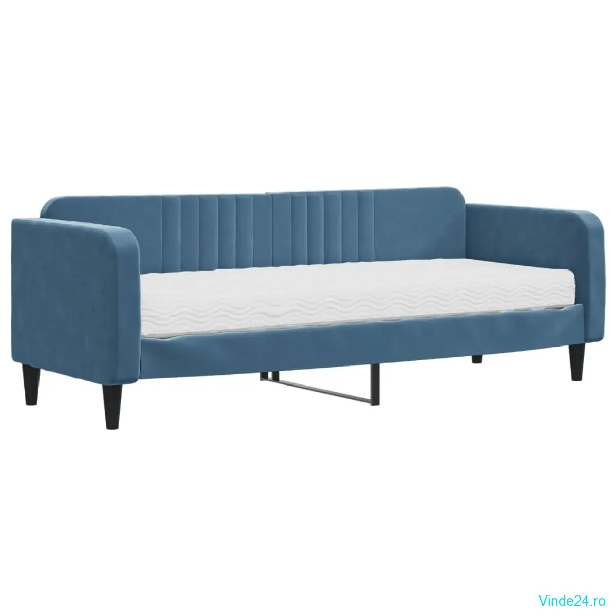 vidaXL Pat de zi cu saltea, albastru, 80x200 cm, catifea