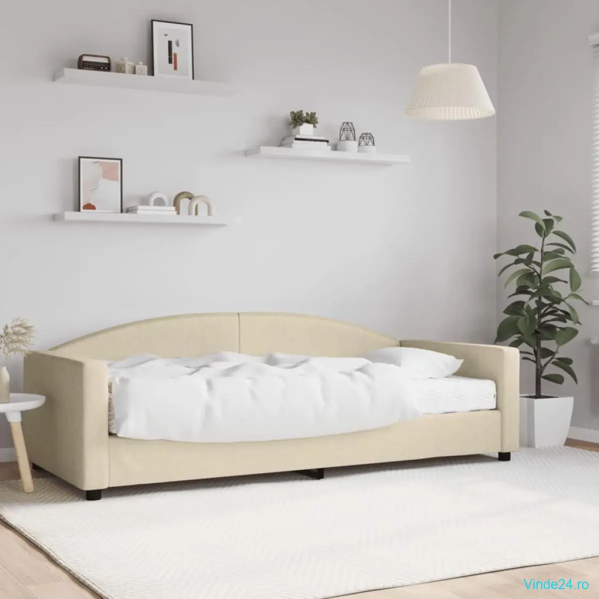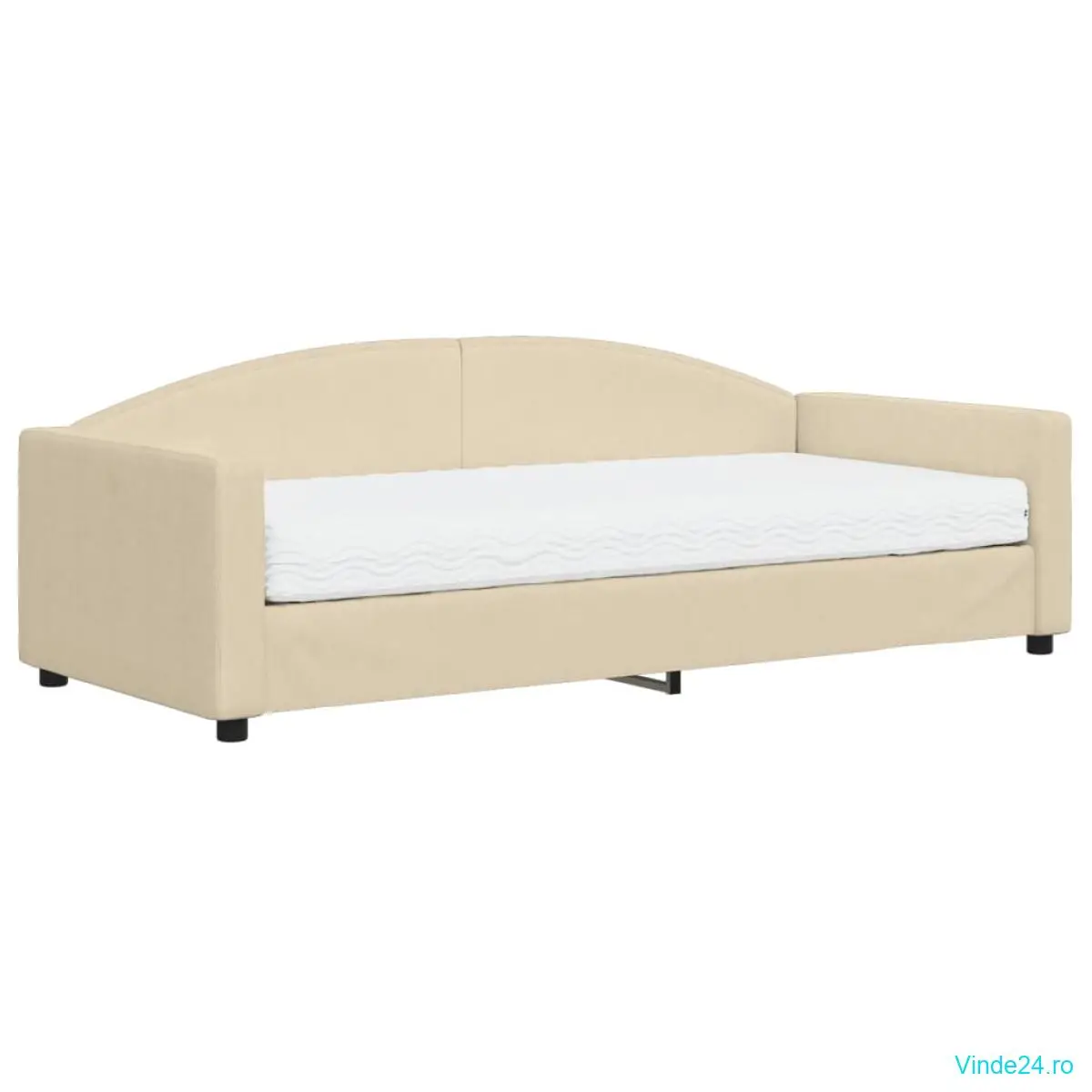 vidaXL Pat de zi cu saltea, crem, 90x200 cm, textil