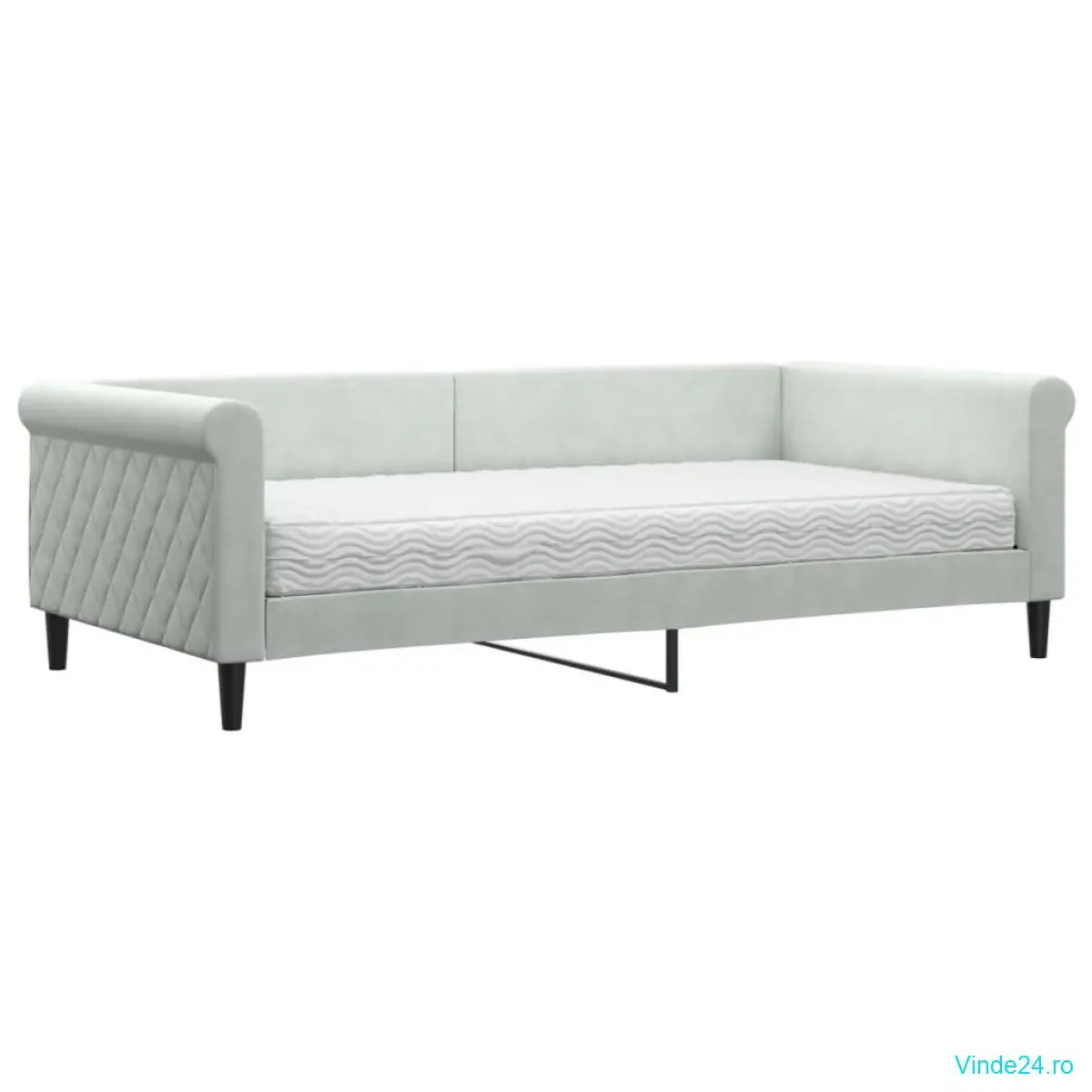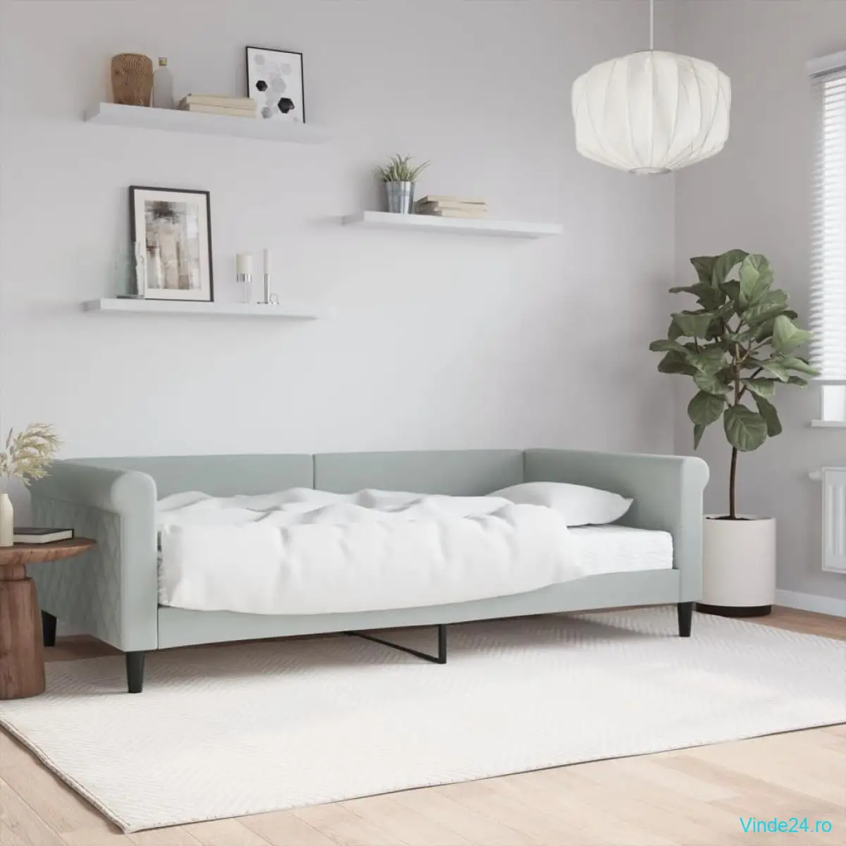 vidaXL Pat de zi cu saltea, gri deschis, 100x200 cm, catifea