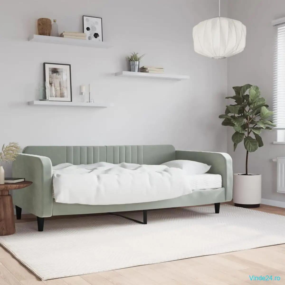 vidaXL Pat de zi cu saltea, gri deschis, 100x200 cm, catifea